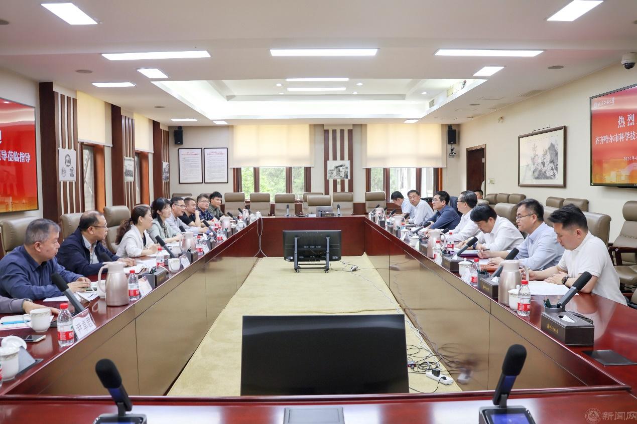 4月25日,齊齊哈爾市科學技術局局長黃靜一行來校考察調研,就深化務實校地合作、推動共同發展進行交流研討。黨委副書記、校長張立峰出席座談會,黨委常委、副校長陳群參加座談會并一同現場調研。座談會由陳群主持。