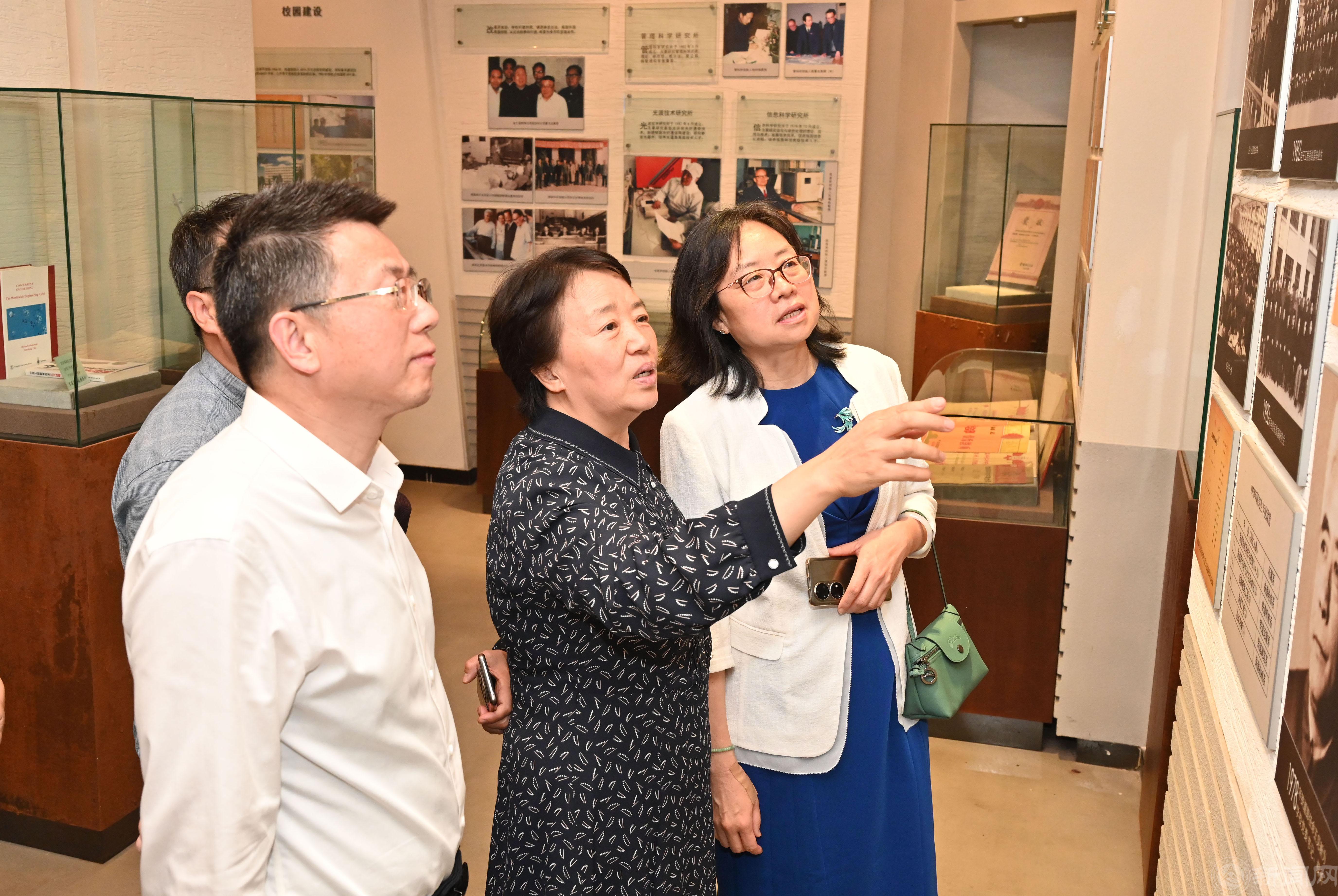 座談結束后,田紅芳一行在文海濤的帶領下,參觀了北京交通大學校史博物館,全面了解北京交通大學的發展歷史,細致了解校史館的建設情況,重點對校史館建設的整體策劃、展陳設計、場館建設等進行深入考察、現場交流。調研組還參觀了北京交通大學校園文化景觀,為我校環境育人工作汲取經驗。