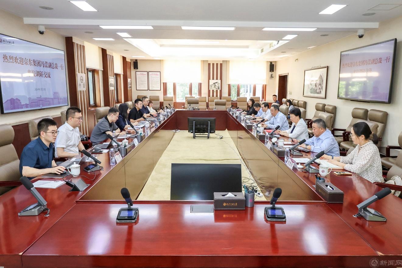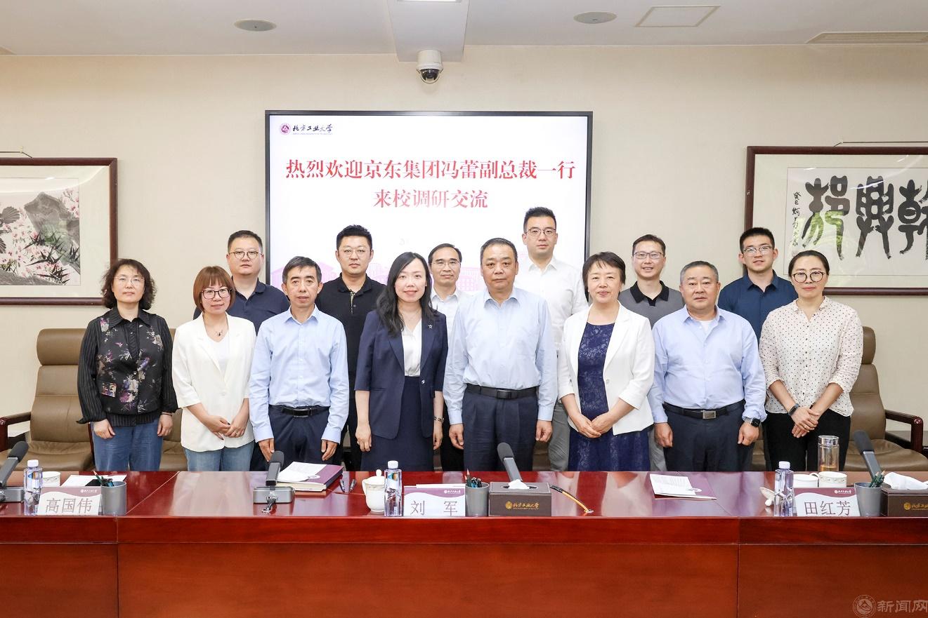 劉軍對馮蕾一行來訪學校表示歡迎,從辦學定位、人才培養、學科建設、服務社會等方面介紹了學校基本情況。他高度評價京東集團的價值取向、精神文化,表示京東集團是一家高科技頭部企業,具有深厚的教育情懷和強烈的社會責任感,是一家與國家經濟社會發展緊密聯系的支柱企業。劉軍指出,雙方具有天時、地利、人和的合作基礎,要秉承有前景、能落地、可持續的原則,圍繞人才培養、學科建設、學生就業實習、黨建思政等深入開展合作共建,制定項目清單,建立工作機制,深入推進校企合作,實現互利共贏,為首都高質量發展作出應有貢獻。