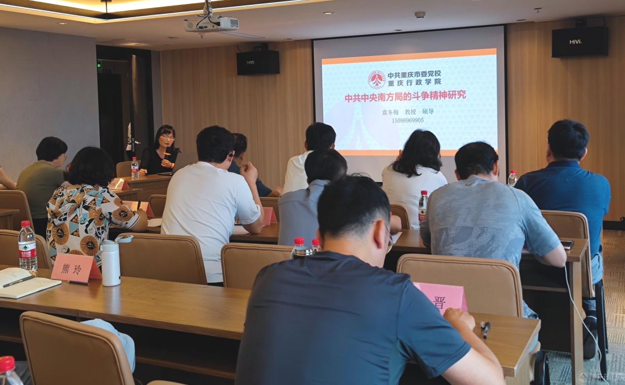 在專題學習研討環節,中共重慶市委黨校、重慶行政學院袁冬梅教授作《中共中央南方局的斗爭精神研究》專題報告。學員們深入學習各民主黨派與中國共產黨風雨同舟的光輝歷史,深切感悟艱苦革命斗爭中鑄就的偉大紅巖精神,深入交流學習體會。