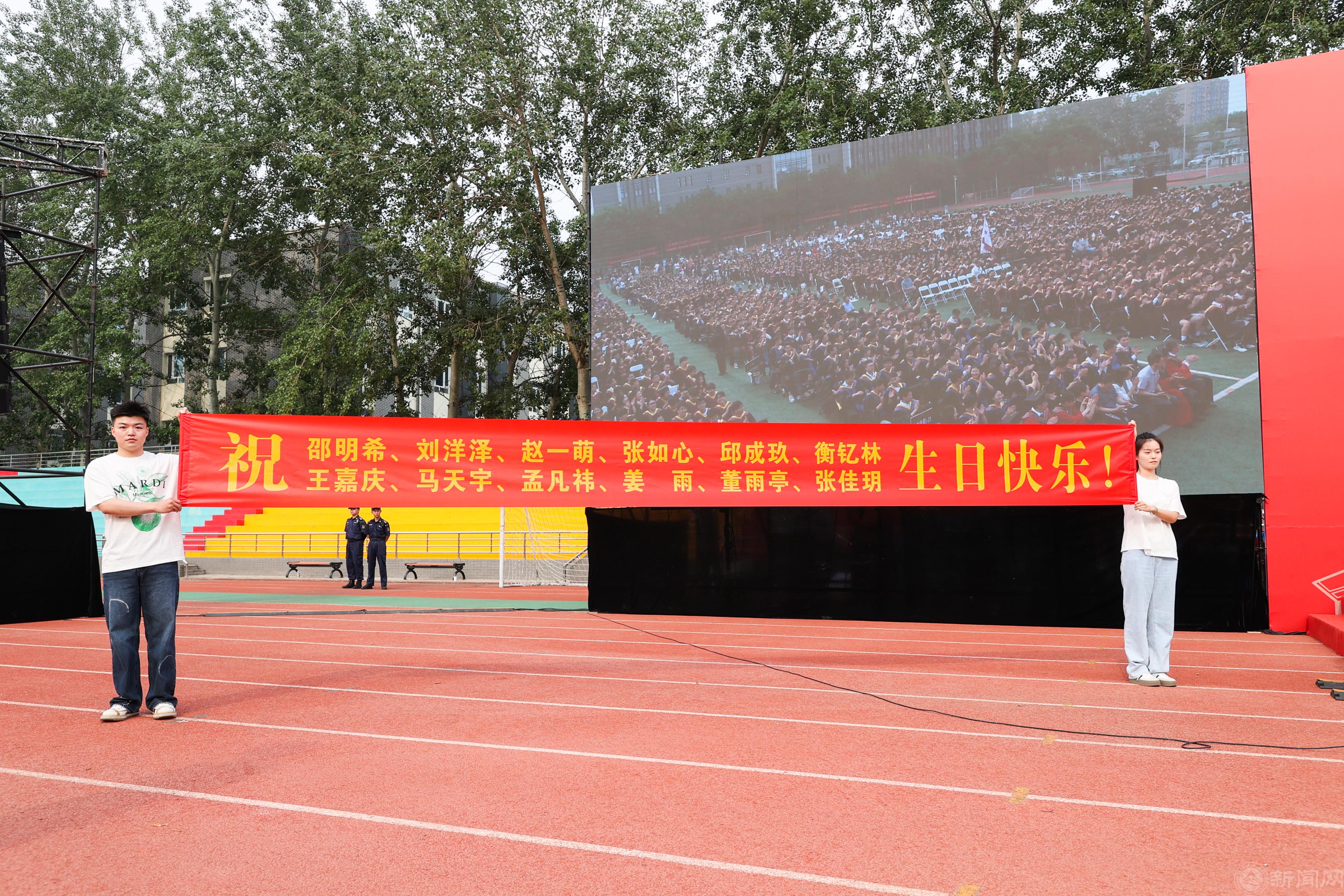 今天,對你們、我最后一次點名,點到名字的同學,請勇敢的、用盡全力回答一聲,到:信息學院邵明希,電氣與控制工程學院劉洋澤、趙一萌,建筑與藝術學院張如心(碩士),土木工程學院邱成玖(碩士)、衡釔林、王嘉慶、馬天宇,文法學院孟凡祎、姜雨、董雨亭,理學院張佳玥。請大家向左轉頭,向南方看。今天,是你們的生日!我代表北方工業大學,祝你們、生日快樂!