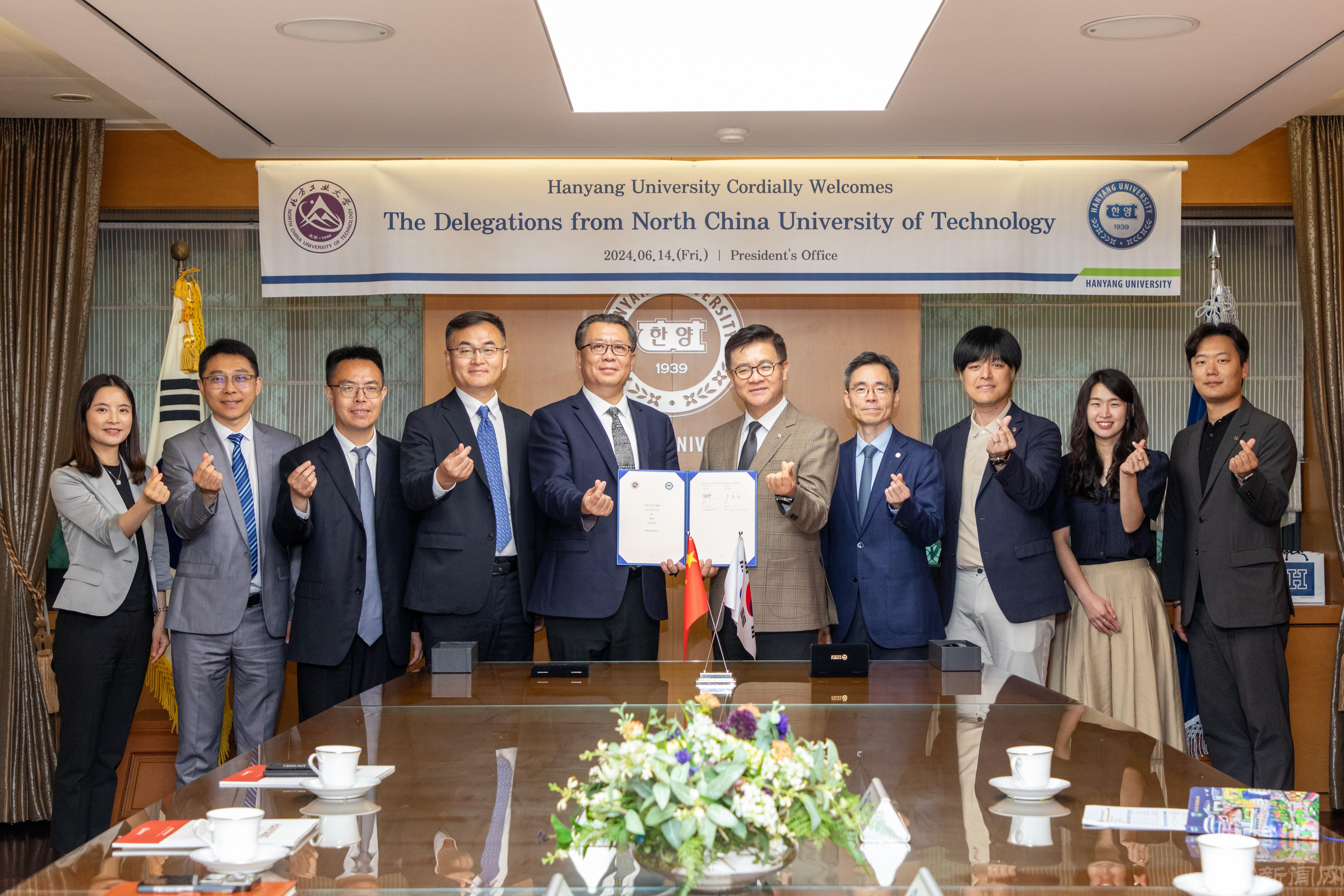 代表團訪問了漢陽大學首爾校區及ERICA校區,同該校校長Ki-Jeong Lee,首爾校區國際事務副校長 Hansun Kim、ERICA校區行政副校長Dong-Hyun Baek、ERICA校區國際事務副校長Bongyoung Yoo等見面座談,并簽署了新版校際合作協議。