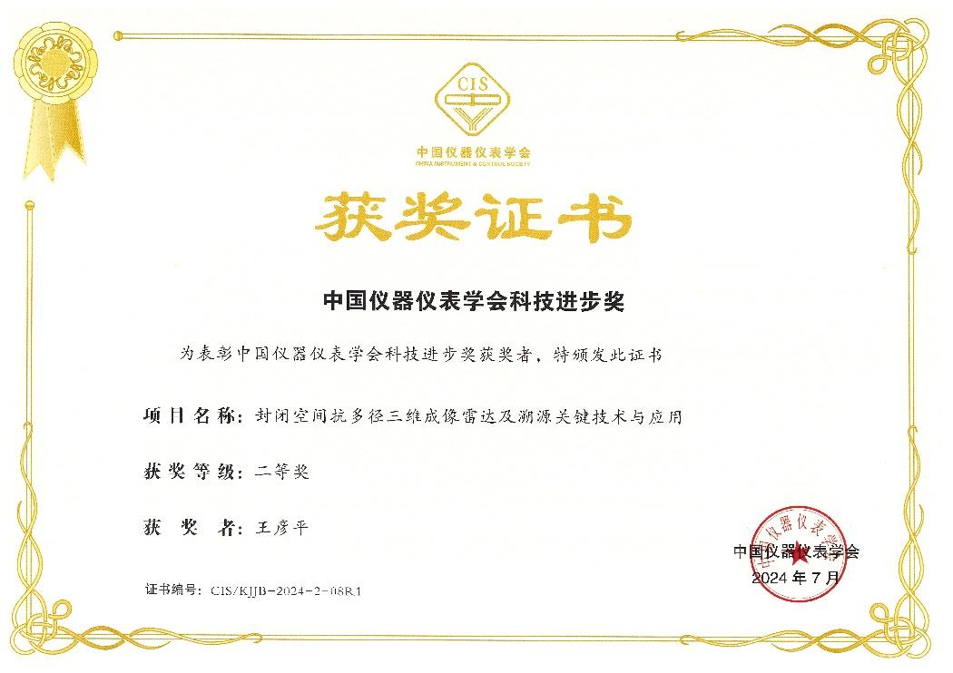 7月30日,2024年中國儀器儀表學(xué)會科學(xué)技術(shù)獎頒獎儀式在成都舉行。我校作為第一完成單位,信息學(xué)院王彥平教授作為第一完成人的項目成果“封閉空間抗多徑三維成像雷達及溯源關(guān)鍵技術(shù)與應(yīng)用”獲評科技進步獎二等獎。