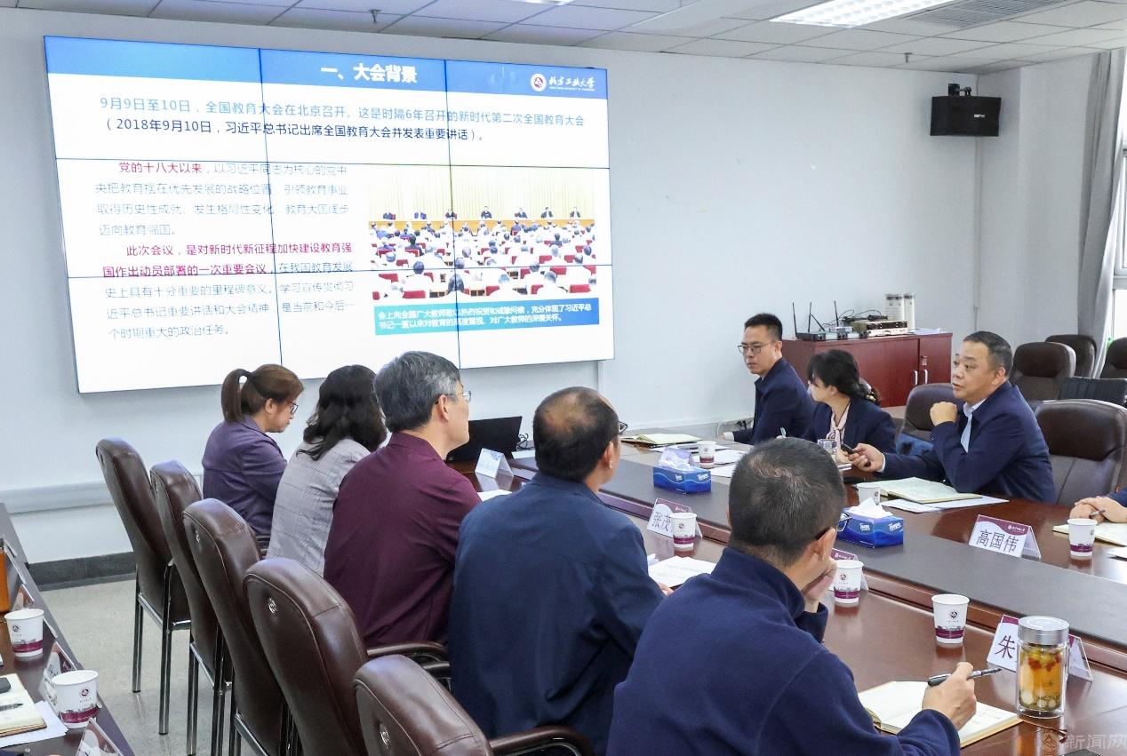 會上,劉軍領學了習近平總書記在全國教育大會上的重要講話精神和全國教育大會精神。他指出,習近平總書記在全國教育大會上發表的重要講話系統闡釋了教育強國建設的科學內涵和基本路徑,首次提出教育強國的六大特質,深刻闡釋了教育強國建設要正確處理好的五個重大關系,系統部署了全面推進教育強國建設的戰略任務和重大舉措,為新時代新征程加快建設教育強國指明了前進方向、提供了根本遵循。