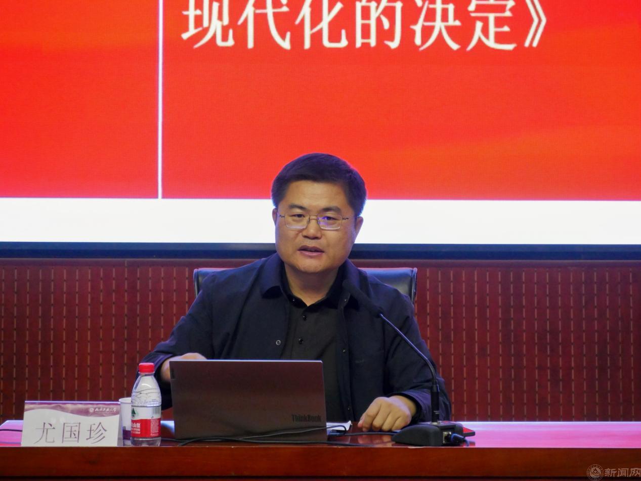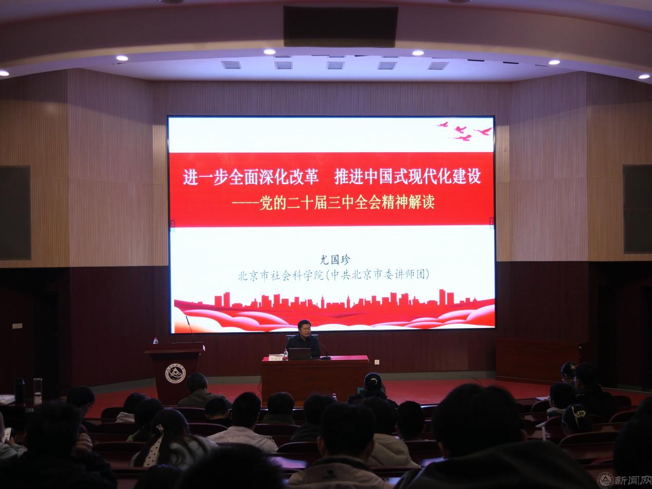 尤國珍教授以“進一步全面深化改革 推進中國式現代化建設”為主題,從深刻認識黨的二十屆三中全會召開的時代背景、全面準確理解《中共中央關于進一步全面深化改革、推進中國式現代化的決定》提出的重大舉措、深入學習貫徹習近平總書記重要講話精神等方面作了深入的宣講輔導。報告既有政治理論高度,又有現實關照,對于廣大師生深刻領會和把握黨的二十屆三中全會精神,以更加積極的姿態融入學校事業發展具有重要的指導意義。