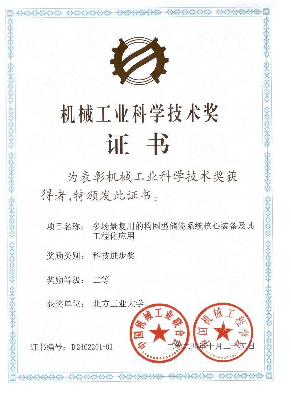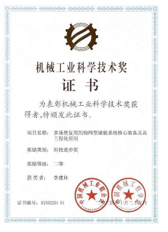 近日,中國機械工業聯合會發布了《關于表彰2024年度“機械工業科學技術獎”獎勵項目的通報》。我校作為第一完成單位,電氣與控制工程學院李建林教授、劉碩高級實驗師等人作為核心成員申報的“多場景復用的構網型儲能系統核心裝備及其工程化應用”獲評科技進步獎二等獎。