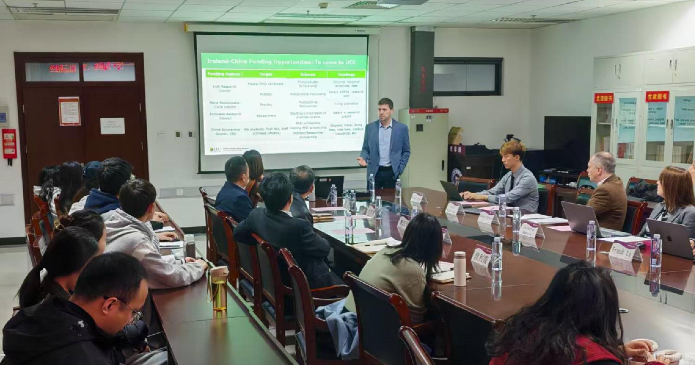 根據學校本科教育教學工作會部署安排,推進學院“三個1”教育國際化建設工作,在此會晤期間,科克大學代表團來訪我校理學院,開展了學術交流活動,就相關專業的碩士、博士聯合培養等項目進行了深入的交流與討論。統計學系主任Eric Wolsztynski通過講座形式,為理學院師生詳細介紹了該校數學和統計學等專業的學科發展及交叉學科建設特色,并分享了兩國在研究生交流和教師訪學方面的資助項目情況。