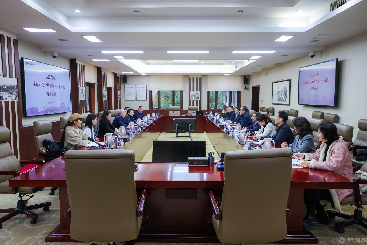 11月15日下午,北京市文化和旅游局領(lǐng)導(dǎo)、二級巡視員馬文一行來校調(diào)研,圍繞落實市委宣傳部、市委教育工委“‘京’彩文化青春綻放”行動等情況進(jìn)行交流指導(dǎo)。黨委副書記史貞軍出席,學(xué)校相關(guān)部門負(fù)責(zé)人及文旅局藝術(shù)處負(fù)責(zé)人參加。