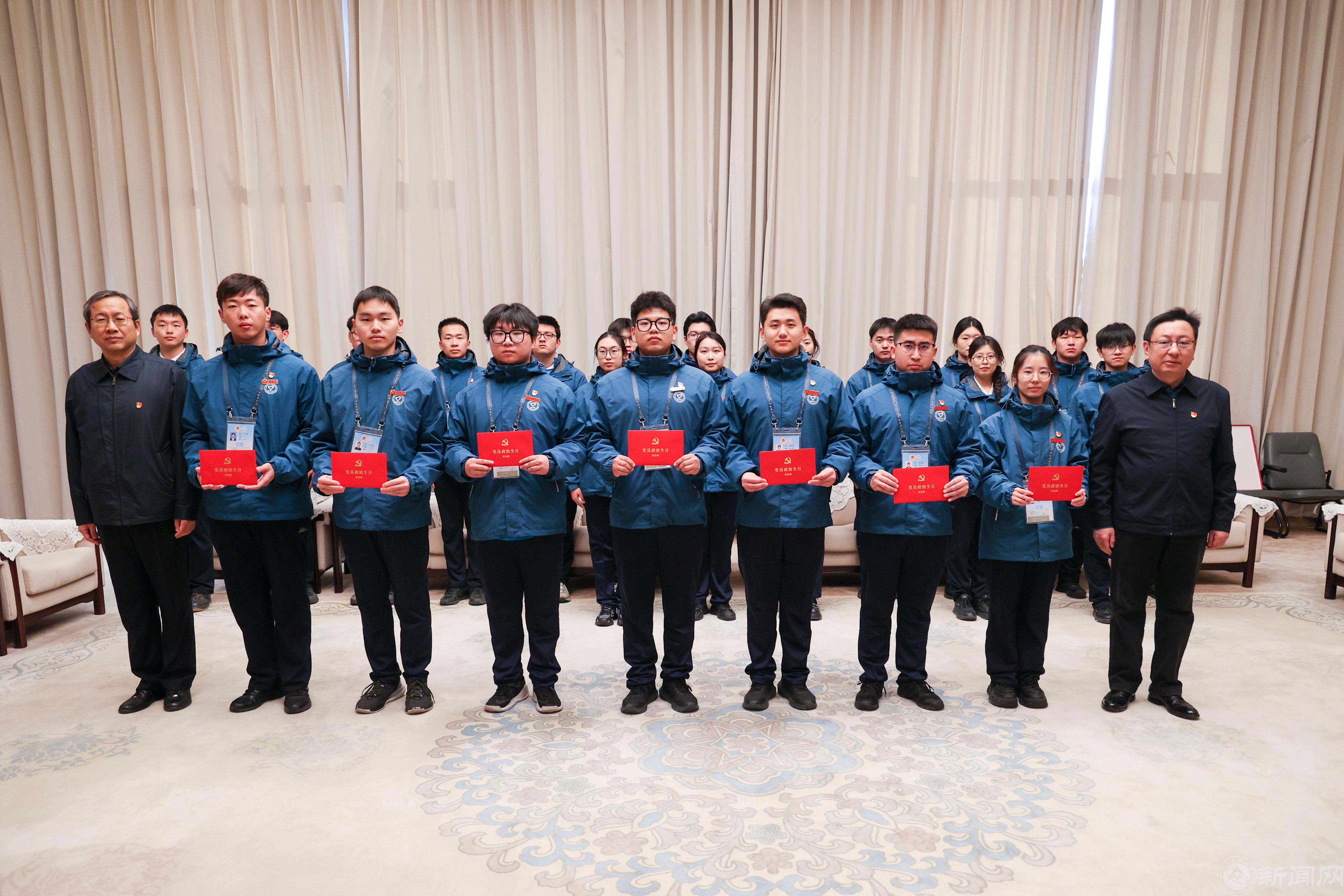 在東會(huì)議大廳,組織志愿者黨員集體過(guò)政治生日、重溫入黨誓詞。李建忠向我校團(tuán)委頒發(fā)“2023毛主席紀(jì)念堂志愿服務(wù)優(yōu)秀組織單位”獎(jiǎng)牌。