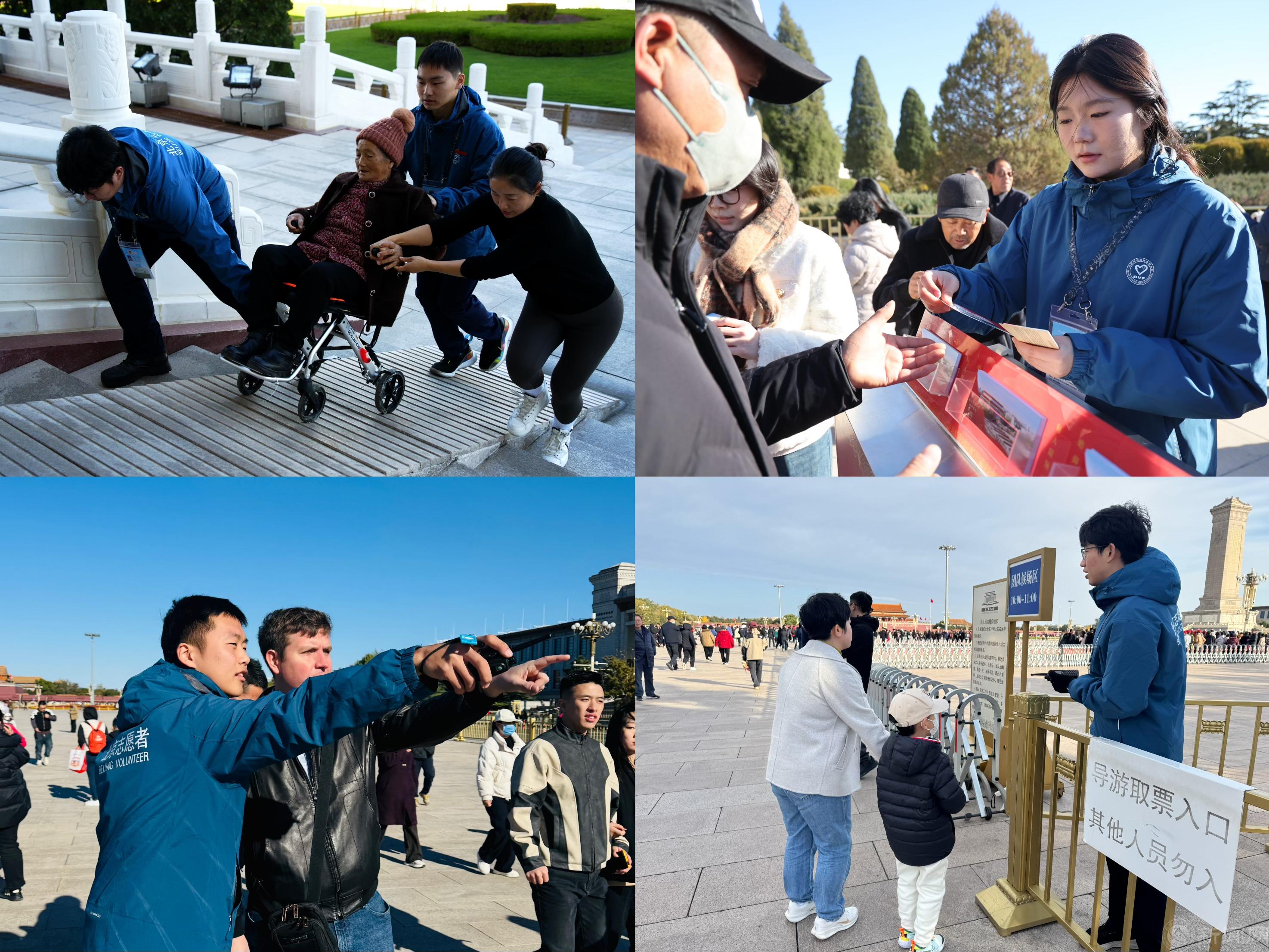 初冬時(shí)節(jié)的北京寒意漸濃,志愿者們克服早起早出、天氣寒冷等困難,始終以飽滿(mǎn)的熱情投入到志愿服務(wù)工作。他們主要負(fù)責(zé)綠色通道隊(duì)伍疏導(dǎo)、現(xiàn)場(chǎng)個(gè)人預(yù)約指導(dǎo)、扶老助殘、藍(lán)立方便民服務(wù)等崗位,以青春行動(dòng)詮釋“為主席站崗,為人民服務(wù)”的熱忱與擔(dān)當(dāng)。在志愿服務(wù)之余,志愿者們還開(kāi)展板報(bào)繪畫(huà)、團(tuán)課學(xué)習(xí),重溫黨的歷史,賡續(xù)紅色血脈;進(jìn)行志愿服務(wù)應(yīng)急培訓(xùn),提高處置各類(lèi)突發(fā)事件的應(yīng)急能力;集體觀(guān)看天安門(mén)廣場(chǎng)升旗儀式,見(jiàn)證五星紅旗冉冉升起的莊嚴(yán)時(shí)刻;參觀(guān)國(guó)家博物館,感受中華文明的厚重與博大……通過(guò)形式多樣的主題黨日、團(tuán)日活動(dòng),激發(fā)志愿者工作熱情,更好地投入到志愿服務(wù)當(dāng)中。