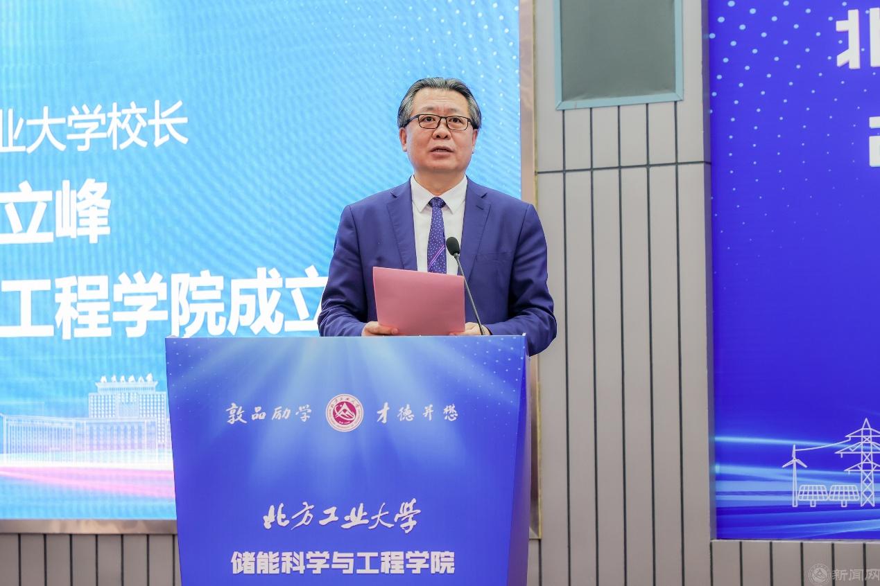 張立峰在成立大會上致辭。他回顧了學校的發展歷史,指出自1978年興辦本科以來,學校師生不斷適應國家和北京市發展需要,推動學科轉型升級,使“老工科”賦予了“新內涵”,開出了“新花朵”。特別是近三年來,學校步入發展 “快車道”,實現了“新人才”“新學科”“新博士點”“新校區”的“四新”發展,師生對學校未來發展充滿信心。張立峰強調,成立儲能科學與工程學院是學校順應時代發展潮流,響應國家戰略需求,培養高素質儲能科學與工程人才,推動儲能技術進步和產業發展的重大舉措。學校將以儲能科學與工程學院為抓手,整合校內外優質資源,打造一流的儲能交叉學科研究平臺,推動儲能科學與工程領域的學術交流和技術創新,為我國儲能產業的發展貢獻智慧和力量,為服務首都高質量發展、推動我國能源革命和可持續發展做出應有的貢獻。