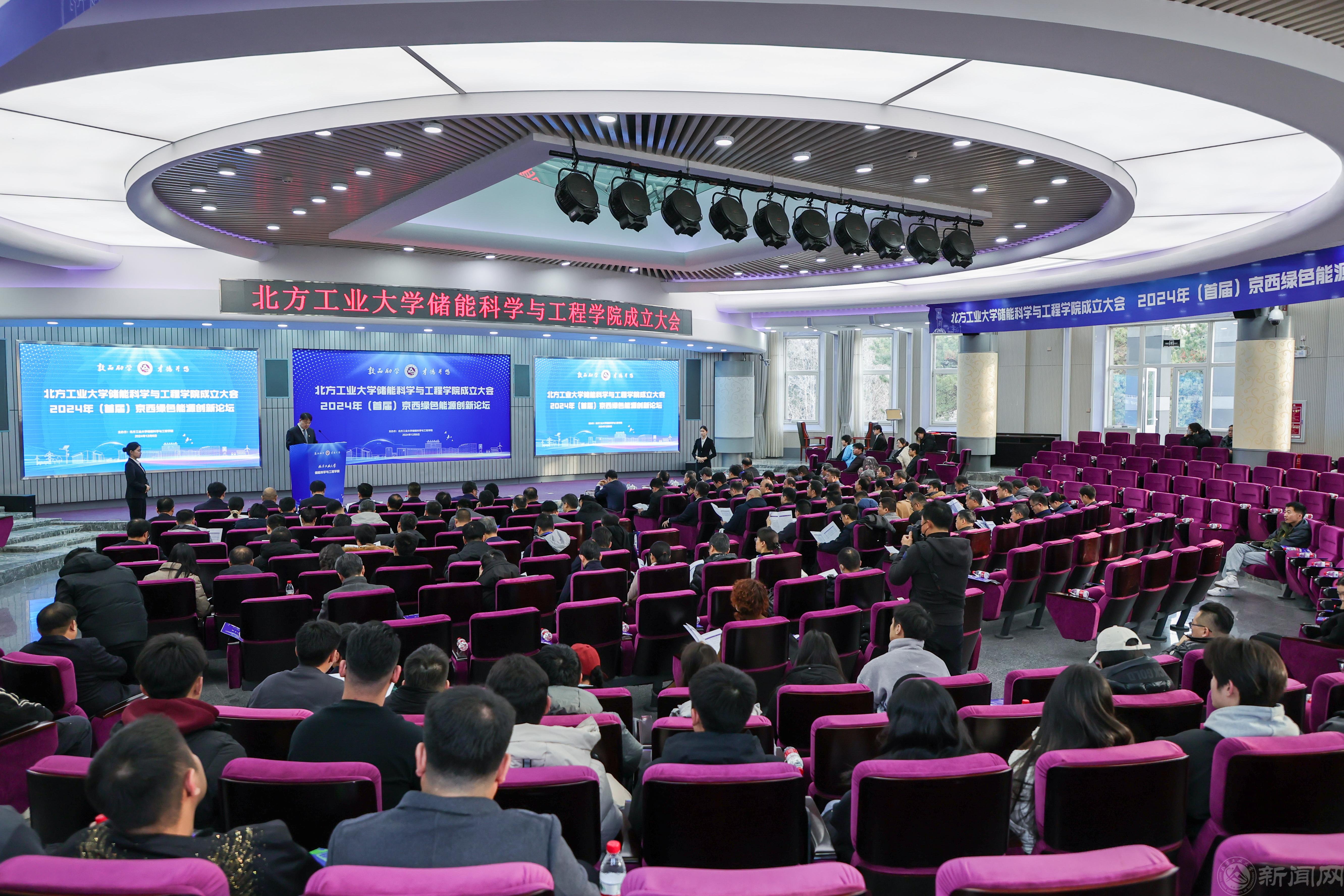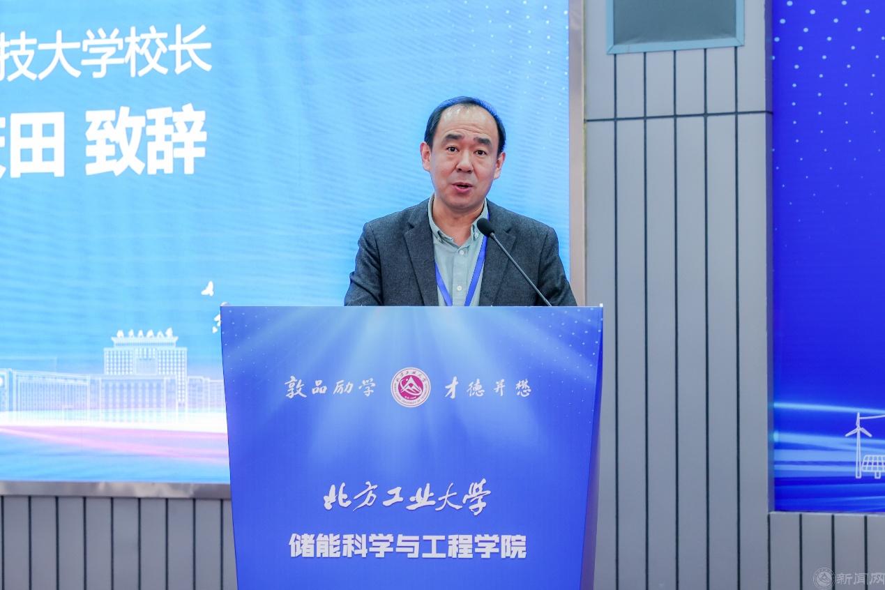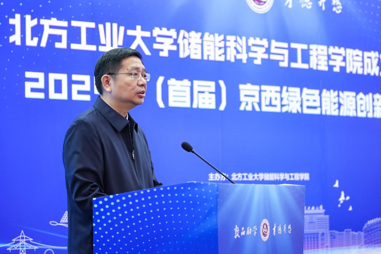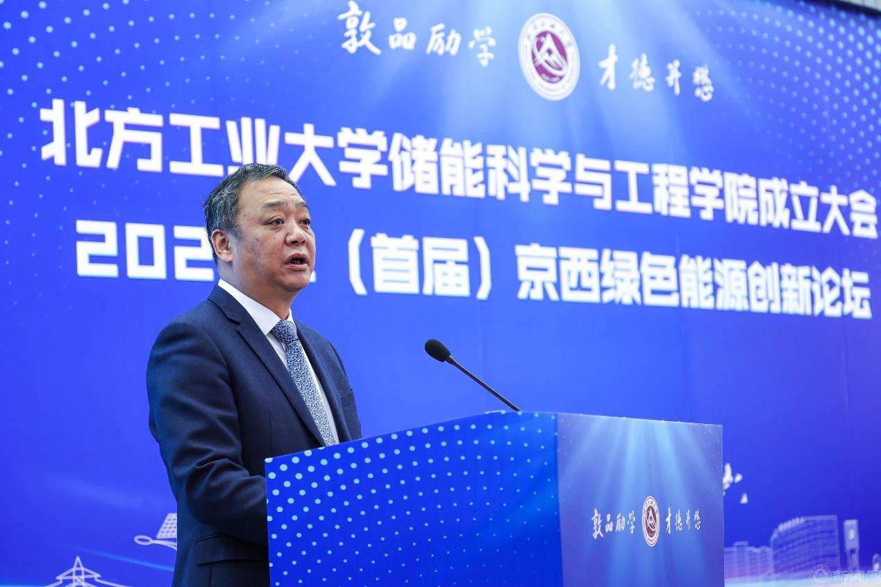 12月6日,北方工業大學儲能科學與工程學院成立大會暨2024年(首屆)京西綠色能源創新論壇在廣學樓報告廳舉行。中國科學院重大科技任務局局長、中國科學院院士朱俊強,中國科學院工程熱物理研究所所長陳海生,北京市科學技術委員會新材料與智能制造科技處處長徐劍,北京市教委科技處副處長李勇,石景山區副區長馬斌,國網電力工程研究院紀委書記韓東明,國網北京市電力公司副總經理齊小偉,北京能源集團有限責任公司總經理闞興,北京衛星制造廠有限公司副總經理張加波,中國電工技術學會副理事長賈利民,山東科技大學校長曾慶田,華北電力大學副校長房方,沈陽工業大學副校長孫秋野,北方工業大學原副校長李正熙等來自政府與科研機構、兄弟院校、合作企業的專家、學者和嘉賓出席成立儀式。北方工業大學黨委書記劉軍,黨委副書記、校長張立峰,黨委副書記史貞軍,黨委常委、紀委書記段輝建,黨委常委、副校長王建穩,黨委常委、副校長栗蘋,黨委常委、副校長王力出席成立大會。大會由北方工業大學黨委常委、副校長陳群主持。