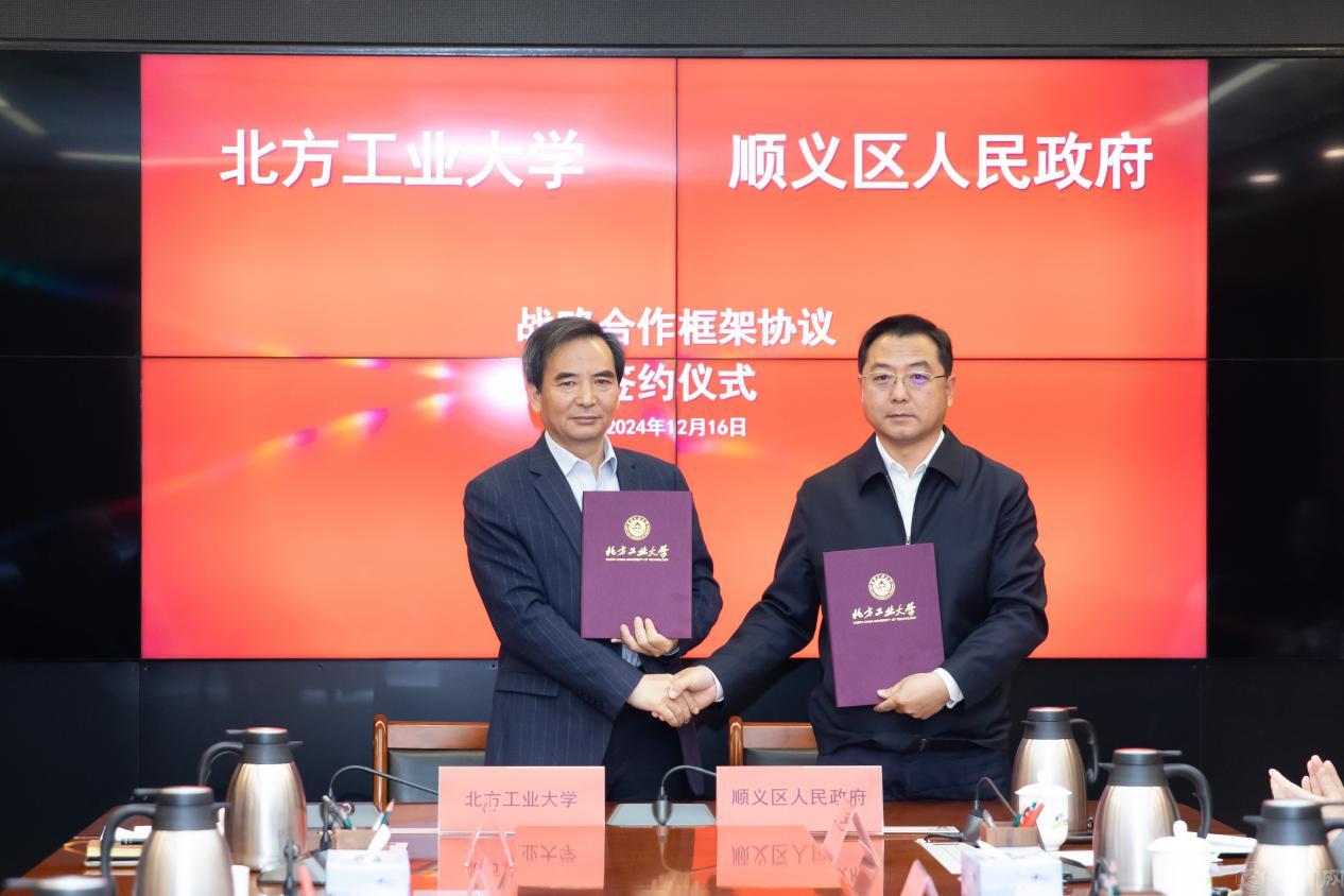 王建穩和馮江全代表雙方簽署了《北京市順義區人民政府與北方工業大學戰略合作框架協議》。根據協議,雙方將在特色產業科技支撐、城市治理和規劃建設、教育教學、人才培養等方面開展務實合作。
