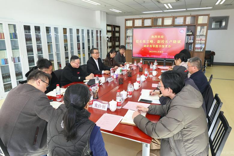1月8日上午,黨委副書記、校長張立峰到圖書館調研指導,聽取圖書館工作匯報,與圖書館館員代表座談。副校長盧曉斌主持調研。