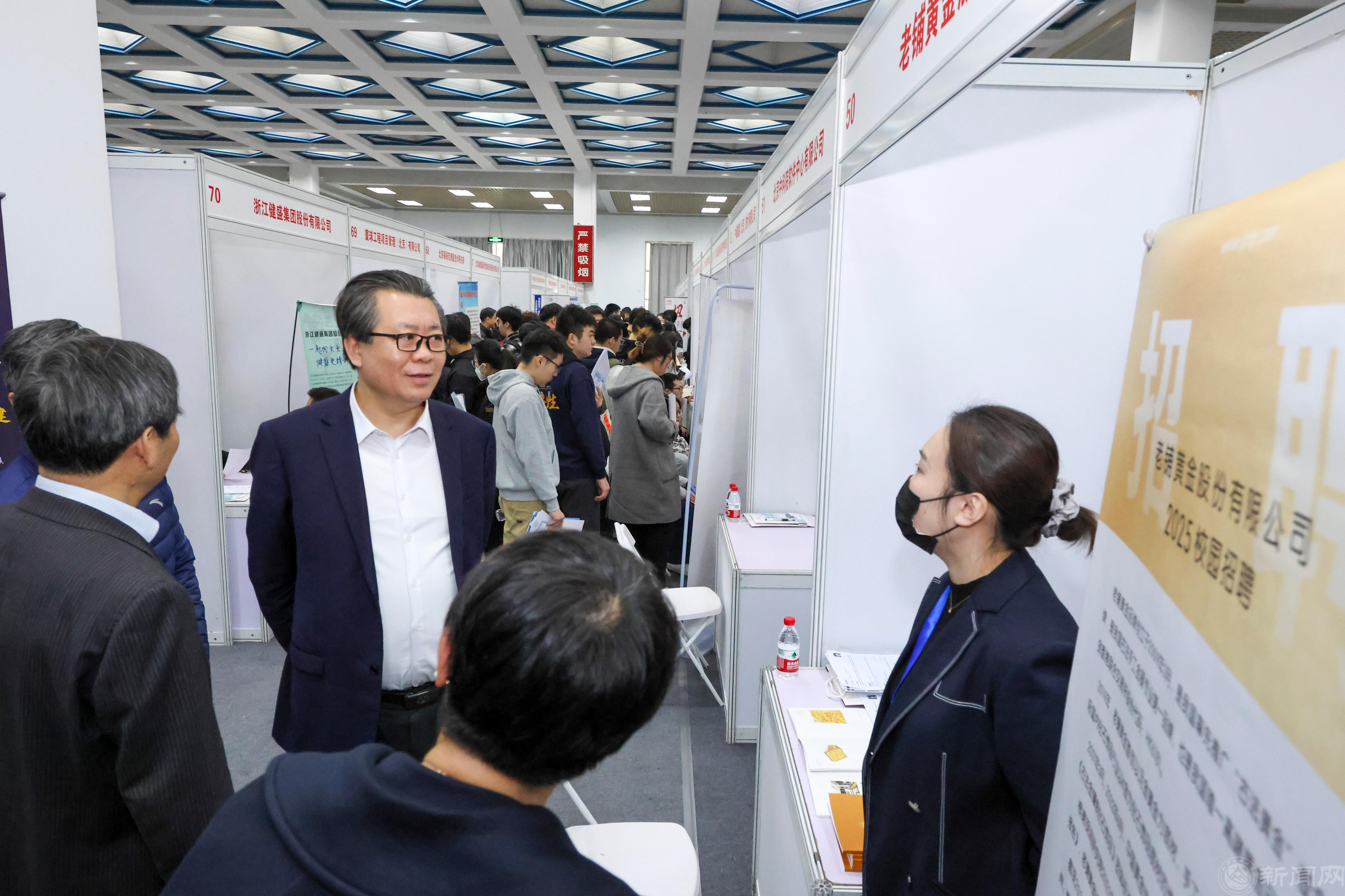 張立峰深入企業展位,詳細了解行業人才需求動態,親自向用人單位推薦畢業生,他要求,各單位各部門要密切配合、協同發力,助力學生就業。