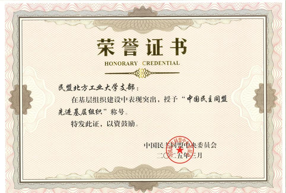 3月18日至19日,民盟中央在福州召開民盟組織工作研討會。會議對在全盟組織建設中取得突出成績的先進集體進行了表彰。民盟北方工業大學支部獲得“中國民主同盟先進基層組織”稱號,這也是民盟北方工業大學支部第二次獲得民盟中央表彰。