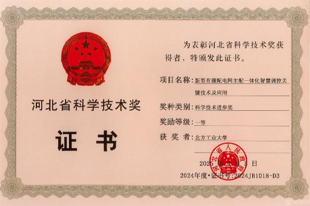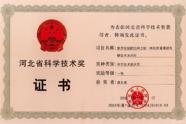 近日,河北省人民政府公布了2024年度河北省科學技術獎獲獎名單,我校電氣與控制工程學院胡長斌教授參與的“新型有源配電網主配一體化智慧調控關鍵技術及應用”獲評河北省科學技術進步獎一等獎。