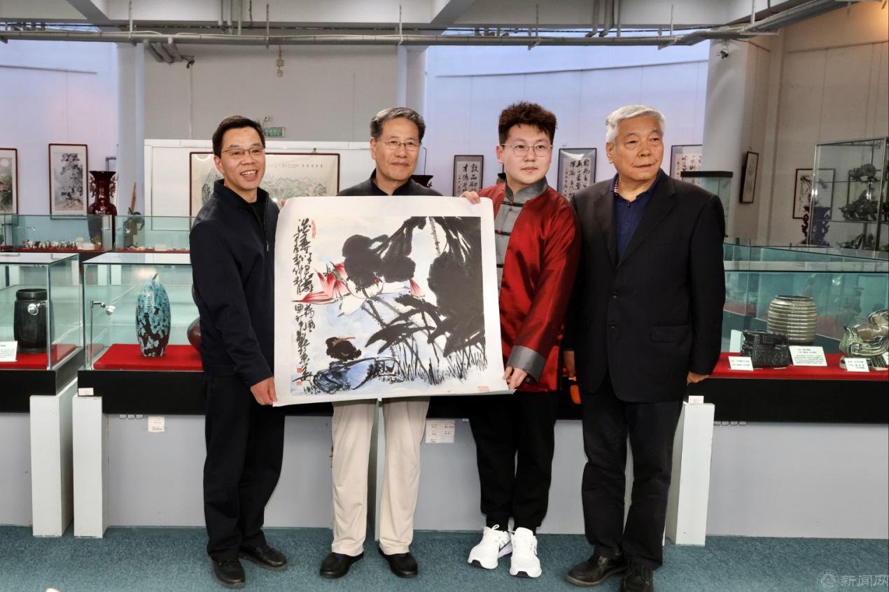 段輝建代表學校接受校友王元向母校轉贈著名畫家、文化部鑒賞專家張國祥的書法作品以及王元個人的美術作品。