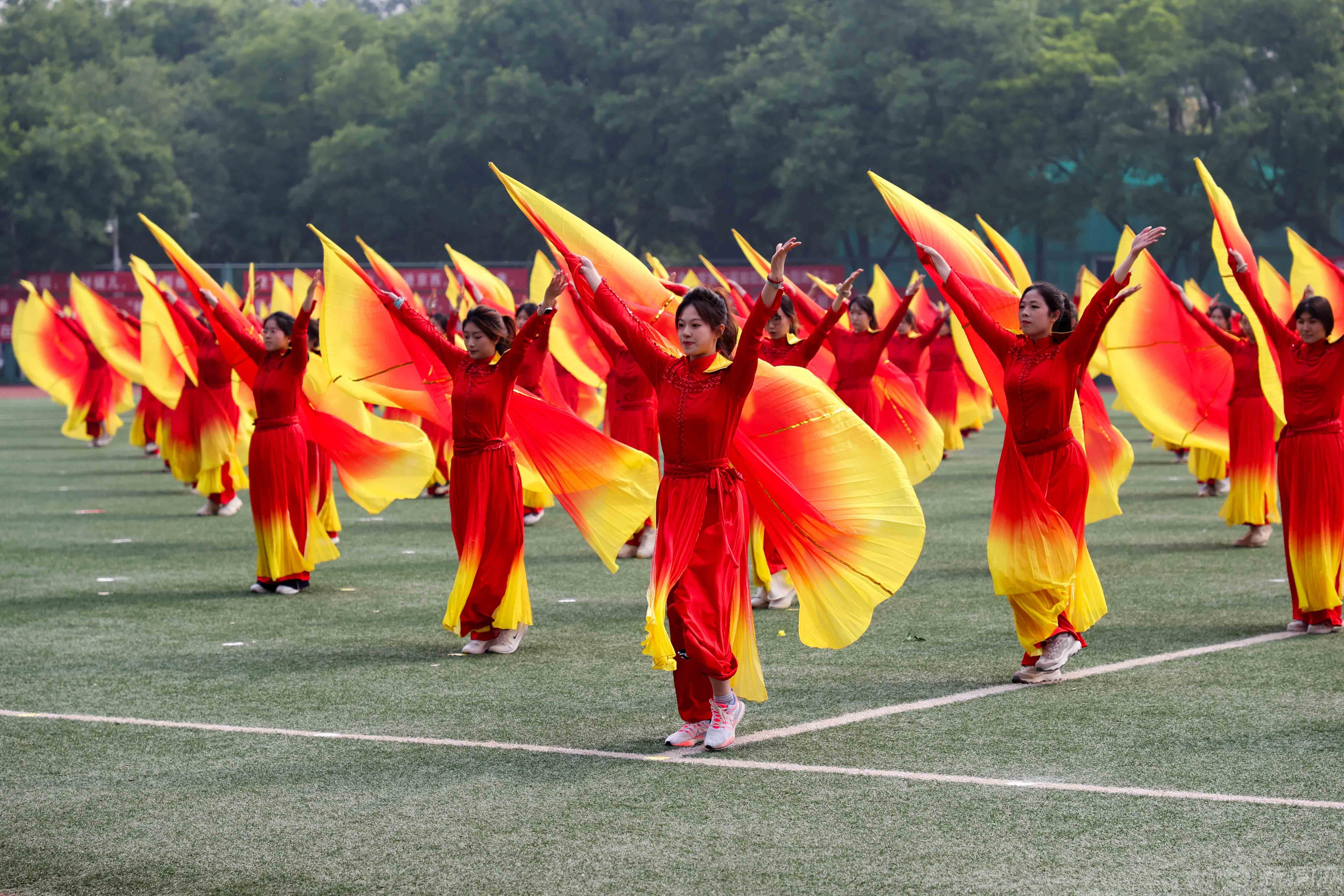 學生團體操輕靈躍動,朝氣蓬勃,青春氣息撲面而來