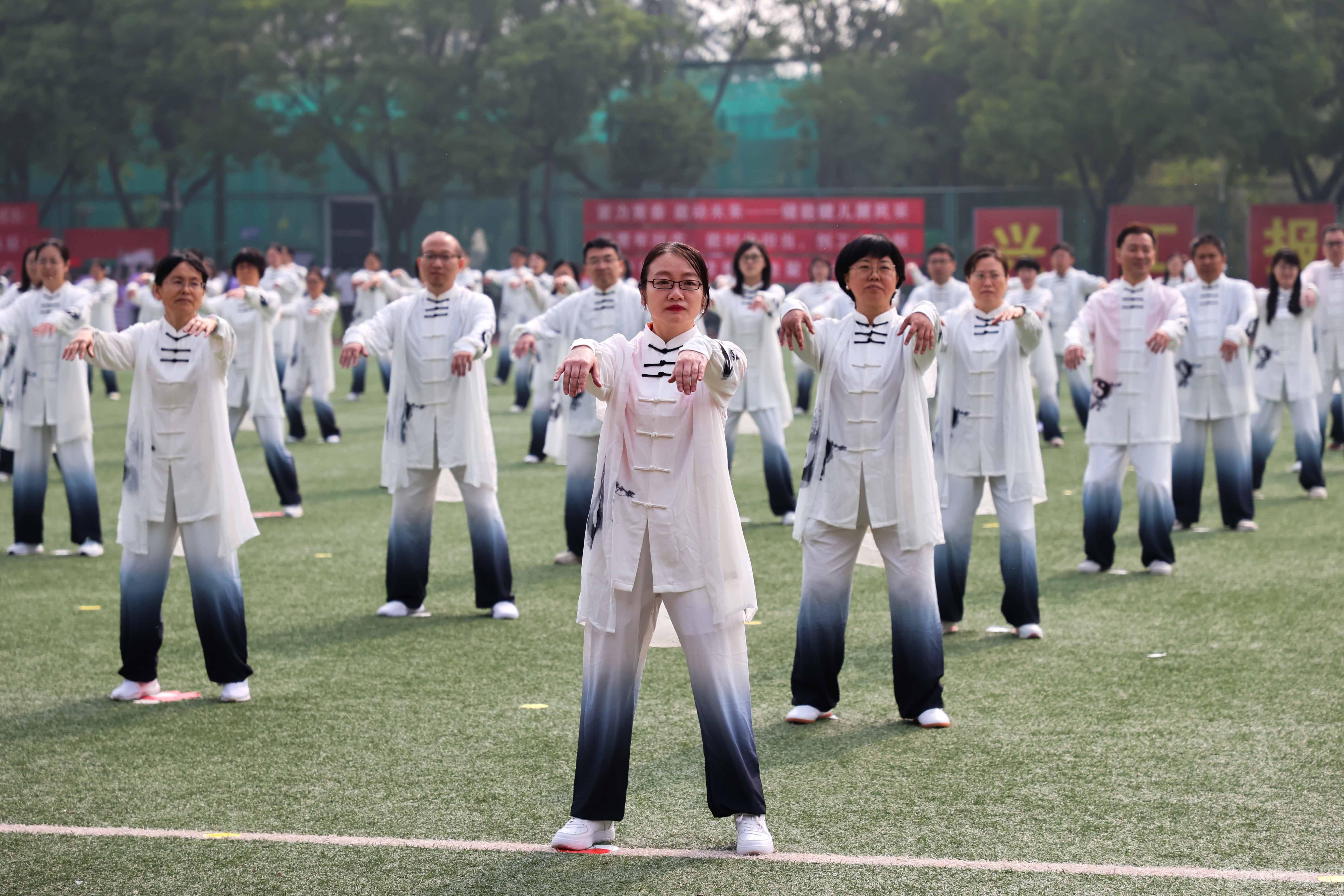 開幕式上,師生聯袂進行了太極拳、龍舞、團體操和旗舞表演,獻上一場高水平的視聽盛宴。