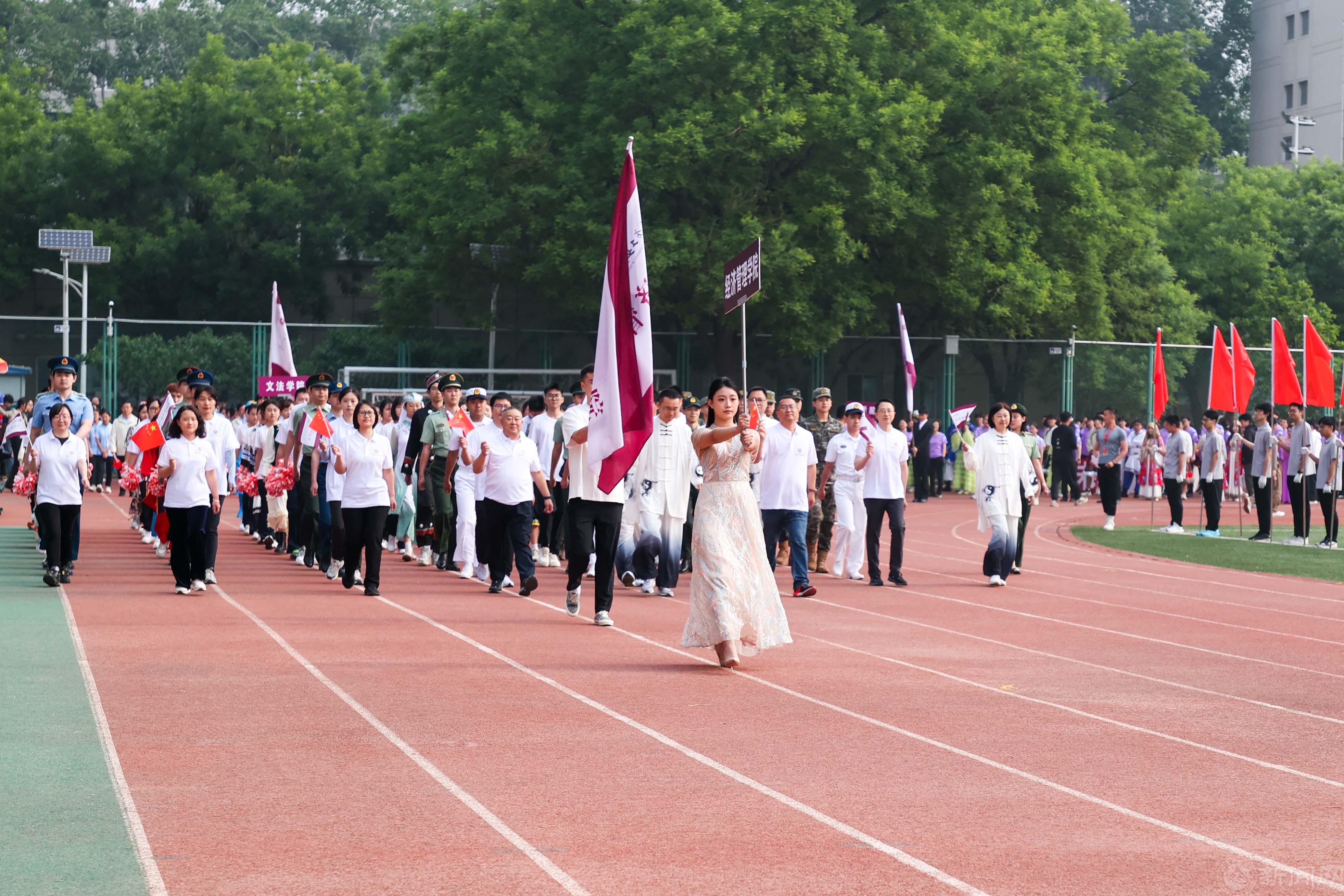 緊隨教職工方隊的是博士生方隊和各二級學院運動員代表方隊,各學院班子成員和教師代表走在方隊前列,師生邁著整齊的步伐,精神飽滿、斗志昂揚,齊聲喊出具有本學院特色的響亮口號。
