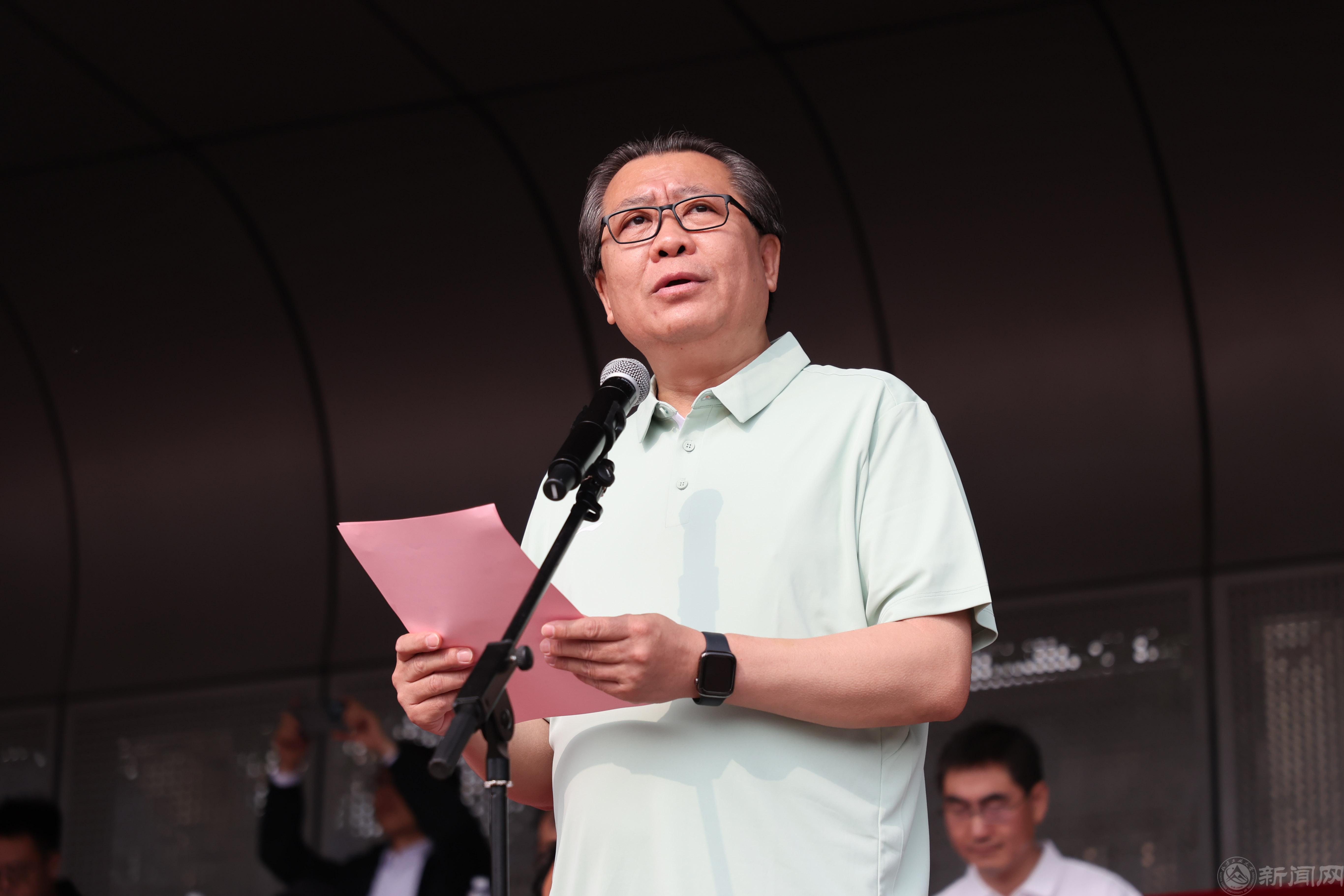 黨委副書記、校長張立峰致開幕詞。他回顧了師生近年來在國內外各項體育賽事中取得的成就,指出這些成就展現了北方工大人頑強拼搏、永攀高峰的精神風貌,同學們在比賽中不僅提高了體育競技水平,更錘煉了意志品格,跑出了青春風采。張立峰表示,學校自1946年建校以來,始終與國家和時代同行,從戰爭烽火年代的“興工報國”誓言,到新時代“樣板建設”的奮力奔跑,都有踐行了胸懷國之大者的責任擔當。2026年學校將迎來80歲華誕,希望全體師生繼承和弘揚體育精神,進一步匯聚學校“四新”發展、“六有”學院的精氣神,為強國建設貢獻北方工大力量。希望全體運動員賽出風格、賽出水平,在賽場上展現青春活力。
