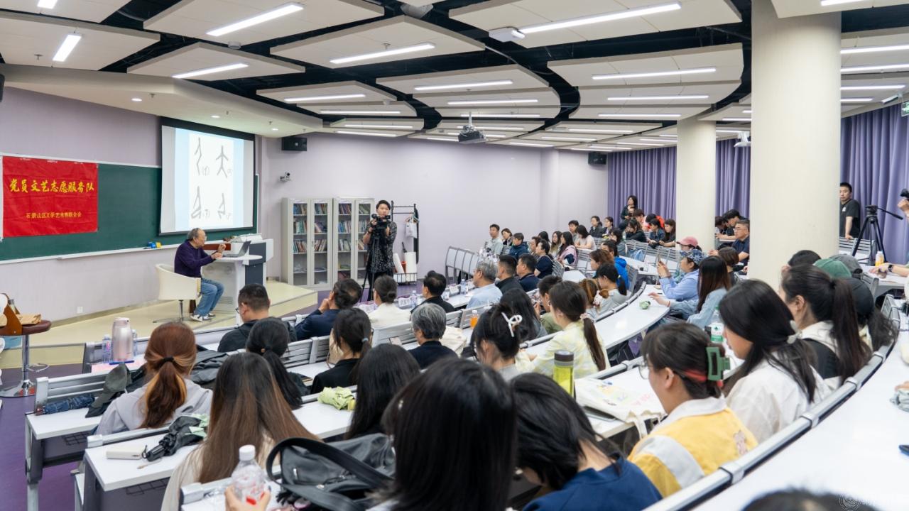 講座中,王祥之先生以淵博的知識、豐富的經驗和獨特的見解,為師生們深入淺出地講解了書法藝術的發展歷程、基本技巧和創作心得。他從漢字的起源講起,解讀了漢字造字法,用生動、豐富的示例闡釋了造字法在書法應用中的重要性和實用性,通過深入淺出的講解、生動鮮活的示范,帶領高校學子沉浸式領略中國漢字藝術的獨特魅力,讓書法這一千年文脈在青年群體中煥發新的生機與活力。