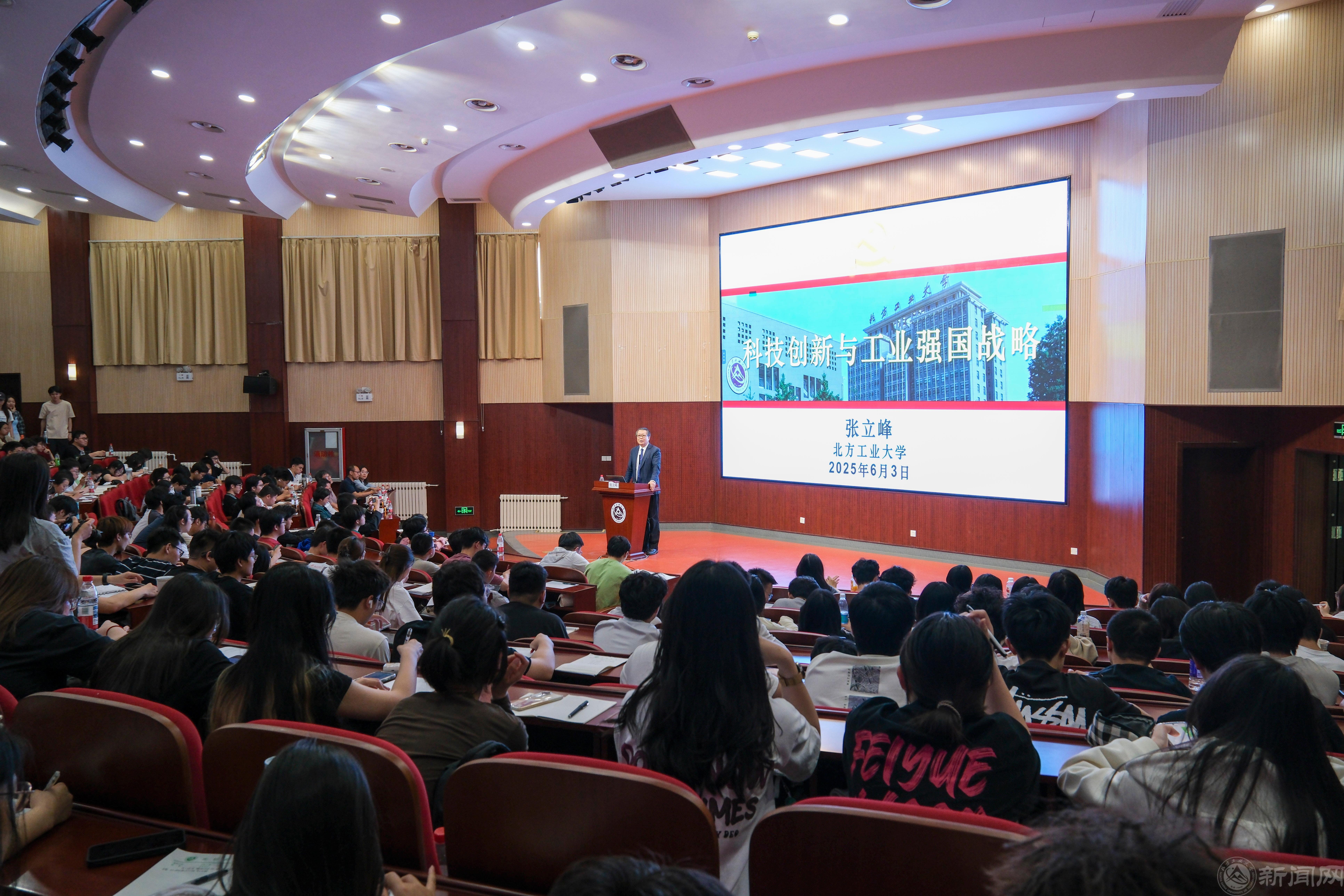 隨后,張立峰聚焦中國(guó)百年鋼鐵工業(yè)發(fā)展史,以大量的數(shù)據(jù)和珍貴史料為依托,深入剖析中國(guó)經(jīng)濟(jì)崛起與工業(yè)發(fā)展之間的緊密聯(lián)系。他指出,高校作為科技創(chuàng)新的前沿陣地,是科技高速發(fā)展的強(qiáng)勁發(fā)動(dòng)機(jī),更是攻克“卡脖子”難題的“主戰(zhàn)場(chǎng)”。在建設(shè)科技強(qiáng)國(guó)的征程中,人才是第一資源,必須堅(jiān)定不移地走基礎(chǔ)研究人才自主培養(yǎng)之路,為國(guó)家的科技發(fā)展筑牢堅(jiān)實(shí)的人才根基。他希望師生傳承弘揚(yáng)“興工報(bào)國(guó)”傳統(tǒng),胸懷“國(guó)之大者”,將科學(xué)研究的重心放在硬核科技上,以青春之我、奮斗之我,為科技強(qiáng)國(guó)建設(shè)貢獻(xiàn)北方工大力量。