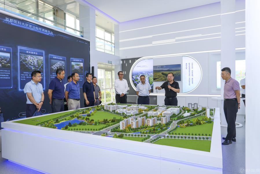 為學習兄弟高校典型經驗,高質量推進延慶校區建設,7月2日下午,黨委書記劉軍、校長張立峰帶領學校黨委理論學習中心組一行前往首都醫科大學新校區(校本部)項目現場調研,首都醫科大學黨委書記呼文亮、副校長徐良熱情接待學校一行。