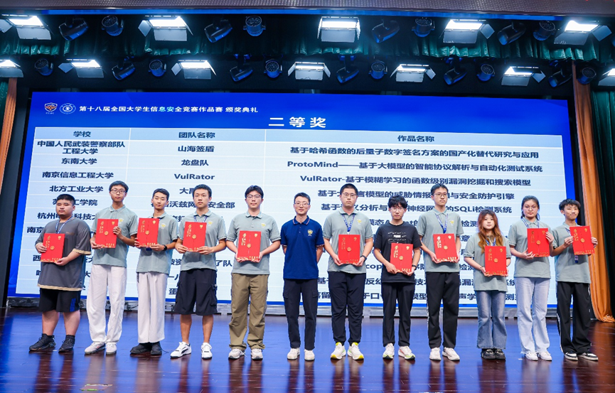 8月16日,第十八屆全國大學生信息安全競賽作品賽決賽在西安交通大學圓滿落幕。我校人工智能與計算機學院喬夢宇老師指導的兩支隊伍分別獲得全國二等獎和三等獎。