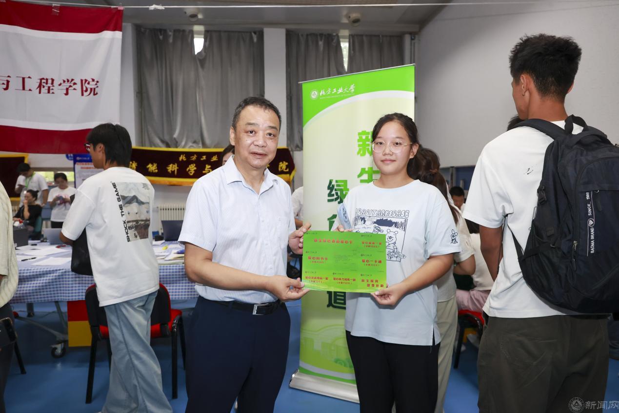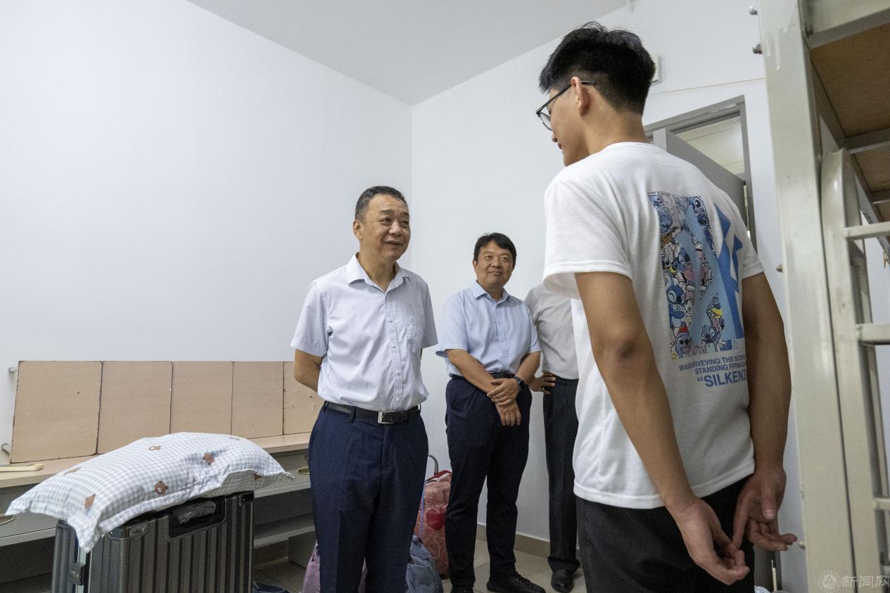 在體育館,黨委書記劉軍來到“綠色通道”前,與學生親切交流,為他們發放“愛心卡”。在學生宿舍,劉軍了解新生入住情況,希望同學們積極融入集體,盡快開啟學習生活。在學生食堂,劉軍要求后勤部門保證食品安全,讓新生吃上可口的飯菜。在老黨員先鋒隊志愿服務點,劉軍鼓勵老同志們繼續發揮“銀發力量”,幫助同學們盡快適應大學生活。