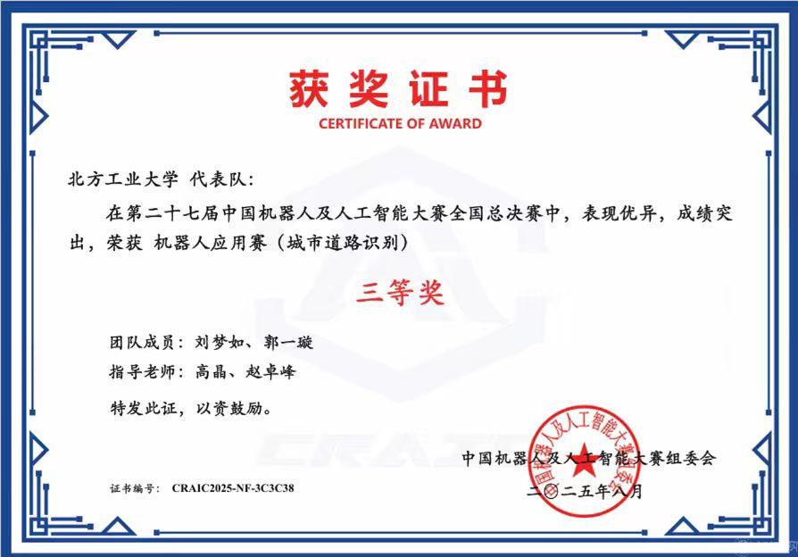 中國機器人及人工智能大賽是國內規模最大、影響力最廣的機器人競賽之一,旨在推動機器人及人工智能技術的創新與應用,為相關領域培養和選拔優秀人才。自1999年創辦以來,已吸引全國超1000所高校、46萬余人次參與。大賽已列入中國高等教育學會發布的全國普通高等學校學科競賽排行榜、全國普通高校大學生競賽分析報告。我校人工智能與計算機學院人工智能專業自2022年參加中國機器人及人工智能大賽以來,累計獲國家一等獎4項、二等獎3項、三等獎2項,北京賽區獎19項,參賽及獲獎學生人數屢創新高,該賽事已成為我校人工智能專業人才培養的有效平臺。