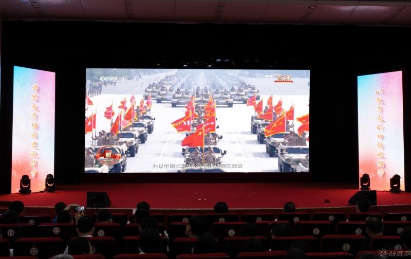 全體師生首先集體觀看視頻,學(xué)習(xí)習(xí)近平總書記在紀念中國人民抗日戰(zhàn)爭暨世界反法西斯戰(zhàn)爭勝利80周年大會上的重要講話,回顧9.3閱兵的盛大場面。參與服務(wù)保障紀念大會的志愿者帶隊教師王子甲和學(xué)生志愿者李夢凡分別以《強國有我,貢獻青春力量》和《這一刻,值得!》,分享了工作感悟,展現(xiàn)了師生心有大我、至誠報國的使命擔(dān)當(dāng)。