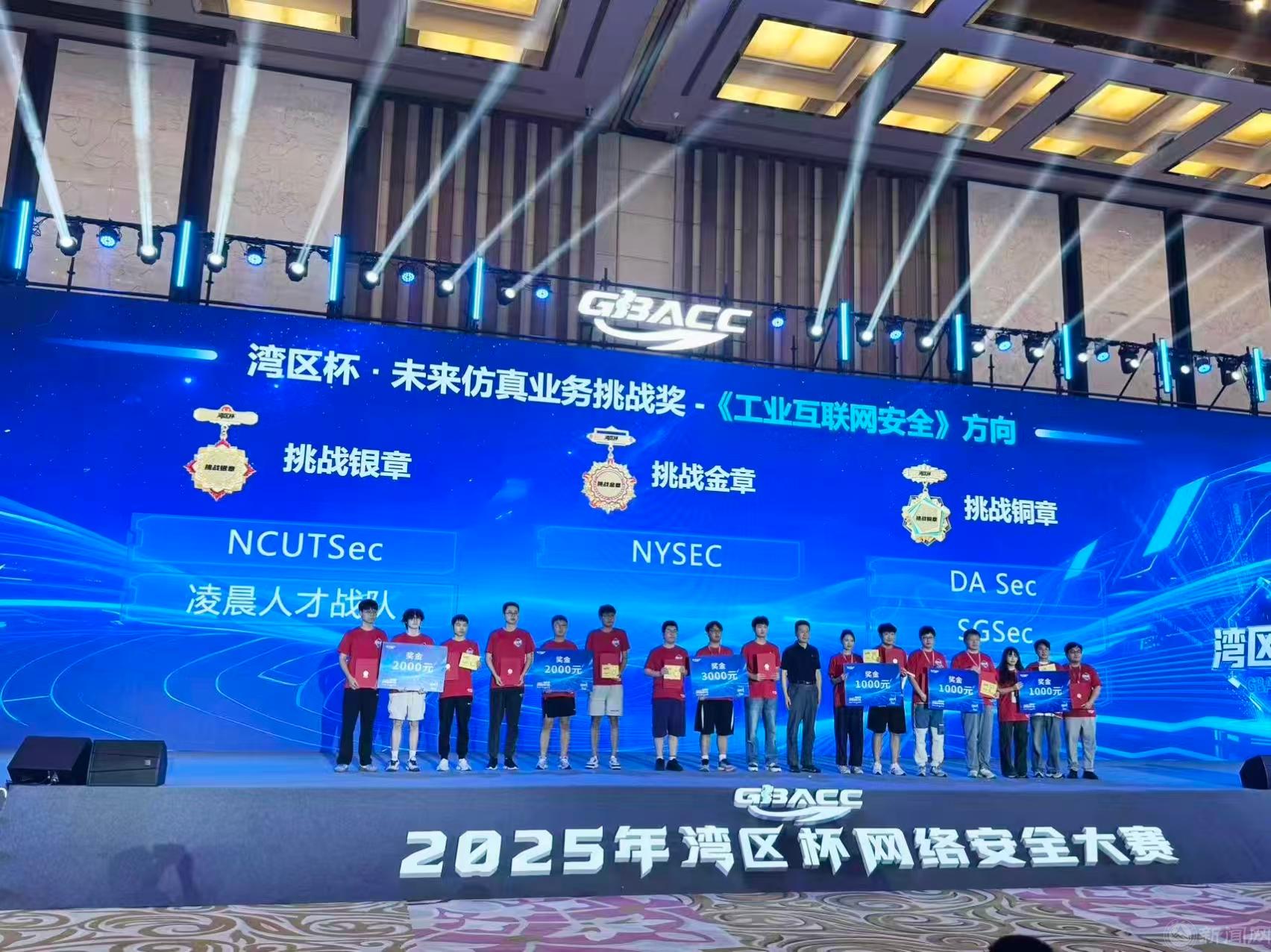近日,由廣東省計(jì)算機(jī)信息網(wǎng)絡(luò)安全協(xié)會與中國電信股份有限公司聯(lián)合主辦的2025灣區(qū)杯網(wǎng)絡(luò)安全大賽全國總決賽在珠海落下帷幕。我校在此次賽事中獲得高校組銀灣獎(總排名第二)及未來安全挑戰(zhàn)賽《工業(yè)互聯(lián)網(wǎng)安全》方向挑戰(zhàn)銀章。