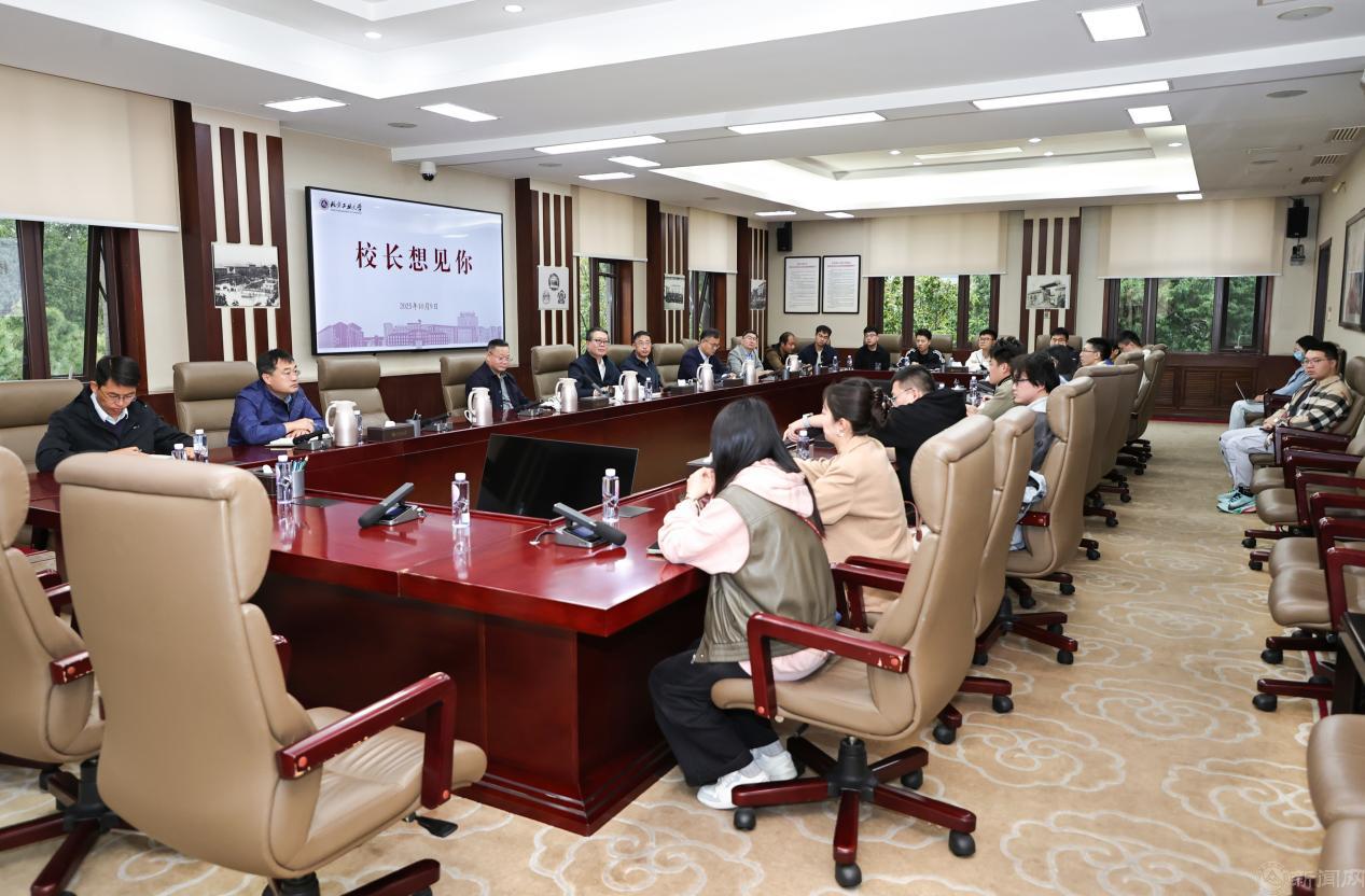 10月9日上午,“校長想見你”系列活動在敦品樓302會議室舉行。黨委副書記、校長張立峰與2024、2025級博士生代表親切座談,圍繞學習、科研、生活等話題深入交流。副校長盧曉斌主持座談會,研究生院、學工部、招生就業處、后勤基建處等部門負責人及電氣與控制工程學院、機械與材料工程學院院長參加座談。