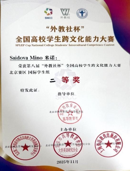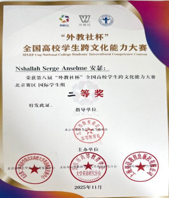 此次獲獎(jiǎng)既是對(duì)參賽師生辛勤付出的肯定,更是我校跨文化教育成效的集中體現(xiàn)。團(tuán)隊(duì)充分發(fā)揮成員互補(bǔ)優(yōu)勢(shì),將跨文化交際理論與真實(shí)生活場(chǎng)景深度結(jié)合,這種 “以賽促學(xué)、以賽促教” 的模式有效提升了留學(xué)生的文化適應(yīng)力與全球勝任力。學(xué)校將繼續(xù)深化國(guó)際化人才培養(yǎng)模式改革,為培養(yǎng)更多知華、友華的跨文化交流使者,推動(dòng)中外文明互鑒貢獻(xiàn)力量。