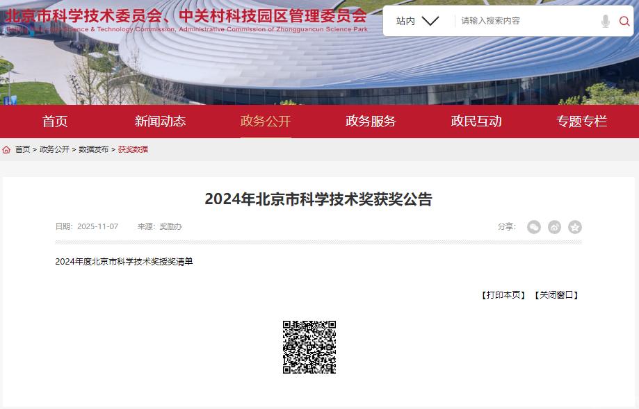 近日,北京市科學技術委員會公布了2024年北京市科學技術委員會科學技術獎獲獎名單,我校在此次評選中喜獲3項獎勵。