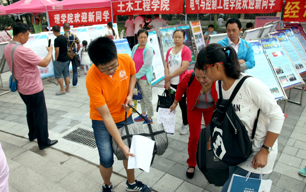 各學(xué)院更將迎新工作做到細致入微:理學(xué)院在新生入學(xué)之前就建立微信平臺加強了與新生的溝通,并通過“理院小靈通”實時發(fā)布學(xué)院的相關(guān)信息,還設(shè)計了“師生連心卡”方便師生聯(lián)系;機械與材料工程學(xué)院加大了黨支部對學(xué)生的指導(dǎo),推行“學(xué)長領(lǐng)航”,為每名新生都配備了兩名入黨聯(lián)系人;電子信息工程學(xué)院和計算機學(xué)院為本院新生準備了嶄新的T恤衫,讓新生感受到學(xué)院的團隊氛圍;經(jīng)濟管理學(xué)院在迎新現(xiàn)場特別設(shè)計了“迎新金榜”,讓同學(xué)重溫榜上有名的自豪;電氣與控制工程學(xué)院向新生發(fā)放調(diào)查問卷,及時掌握新生的生活和思想動態(tài),便于更加有針對性地開展學(xué)生工作。為了方便與家長進行溝通,各學(xué)院都將在迎新結(jié)束后召開家長會,與家長互動形成學(xué)生培養(yǎng)的合力。