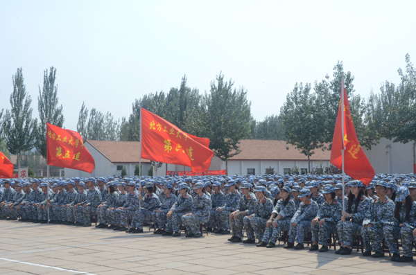 在雄壯的解放軍進行曲之后,郭玉良副書記宣布了北方工業大學2014級軍訓團成立的決定、軍訓團干部名單,并為軍訓團授團旗、連旗。軍訓團團長、中國人民解放軍66188部隊副參謀長汪榮作了熱情而振奮的軍訓動員。機械學院材料14-2班張昊代表學生發言,表達了不畏艱苦,服從命令,高標準完成訓練任務的決心。郭睿代表教官發言,表示將盡心盡責,合理安排訓練任務,科學施訓,確保高質量完成軍訓任務。在軍訓團副團長安雪峰的帶領下,同學們高舉右拳,莊嚴宣誓。隨后,承訓部隊表演了分列式、隊列動作、軍體拳、腰帶擒敵術等訓練科目,教官們令人震撼的氣勢和颯爽的英姿贏得了同學們的陣陣掌聲。