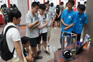 6月11日為獲獎項目現場交流環節,活動吸引了眾多學生前來觀摩、交流,每一件參展的作品均由作者親自講解,大部分作品還允許參觀者親自體驗、操作。