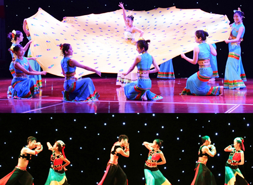晚會由來自各民族的同學們表演了包括漢族、傣族、苗族、彝族、蒙古族、維吾爾族和藏族等民族的特色舞蹈,刮起了一股濃郁的校園民族風。整臺晚會彰顯了我校各民族學生親如一家的民族情懷,展示著青年大學生的青春魅力。