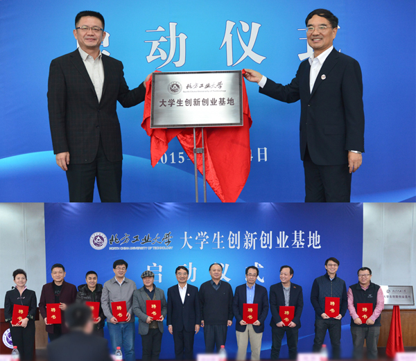 鄭文堂校長、郭玉良副書記為“北方工業大學大學生創新創業基地”揭牌,標志著我校大學生創新創業基地正式啟動。鄭文堂校長、楊軍常務副會長為受邀出席啟動儀式的校友企業家頒發了“大學生創新創業導師”聘書。