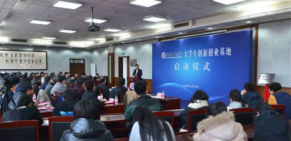 12月24日下午,大學生創新創業基地啟動儀式在四教十五層報告廳舉行,校長鄭文堂、校黨委副書記郭玉良、校友會常務副會長楊軍,教務處處長王景中、學生工作部部長李云馳、研究生工作部部長趙姝明、素質教育辦公室主任劉夕海,校友企業家王建民、陳菁、劉京遠、郝吉水、黃瑜、謝松林、楊建奎、尹杉、李繼燕、劉立豐,以及師生代表等100多人參加了啟動儀式。