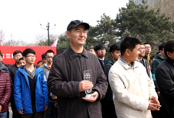 機械與材料工程學院的胡福文老師,鄭重從謝輝書記手中接過“玉蘭新聞人物獎”的獎牌,這塊獎牌對他來說分量頗重。