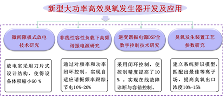 該項目以我校自主知識產(chǎn)權的新型大功率高效臭氧發(fā)生技術為支撐,以臭氧作為高強度氧化劑用于廢水和廢氣深度處理,顛覆了傳統(tǒng)用化學方法治污帶來二次污染的嚴重問題,同比可以實現(xiàn)節(jié)能20%、體積縮小60%、控制精度提高10%等特點,部分關鍵技術達到國內(nèi)領先水平。可以實現(xiàn)工業(yè)煙氣脫硫、脫銷、脫汞一體化治理和達標排放,也可以實現(xiàn)工業(yè)和生活污水的一次性綜合治理和達標排放,特別是實現(xiàn)飲用水殺菌、消毒和除味的一次性綜合處理。