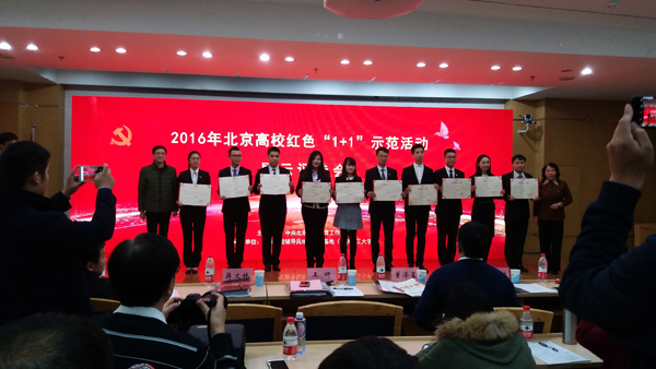 12月21日下午,2016年北京高校紅色“1+1”示范活動展示評選會在北京化工大學舉行。經過精彩的視頻展示和答辯環節,我校電子信息工程學院通信本科學生第二黨支部從北京各高校參加評選的1000多個學生黨支部中脫穎而出,進入25強,最后總決賽以總分第五名的成績榮獲北京市高校紅色“1+1”示范活動一等獎。這是我校在該項評比活動中取得的最好成績,實現了我校學生黨建工作的一項歷史性突破。