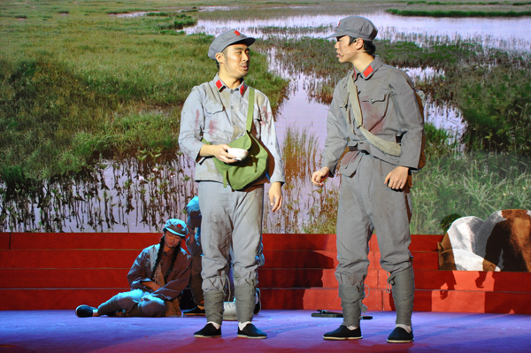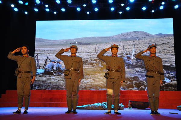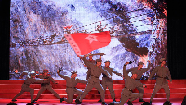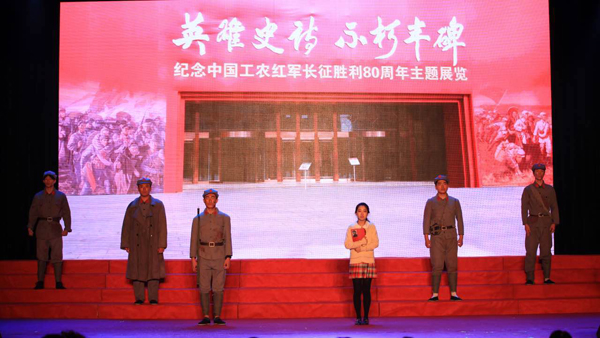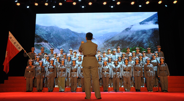 在頒獎典禮上,大學生藝術團的同學們以合唱、短劇、舞蹈、朗誦等形式重現了紅軍長征途中的感人故事,詮釋了當代大學生對偉大長征精神的理解。合唱《七律.長征》拉開了典禮的序幕,將大家帶回到了那個艱苦卓絕的長征歲月;短劇《20歲的天空》表達了在中國共產黨領導下的紅軍戰士崇高而堅定的理想信念;短劇《大銅鍋的故事》表達了紅軍戰士強烈的集體主義精神和永不放棄的堅強意志;舞蹈《飛奪瀘定橋》表達了紅軍戰士敢于征服一切困難而不被任何困難所征服,不怕犧牲、英勇戰斗的革命精神和英雄氣概;短劇《金色的魚鉤》和《豐碑》表達了共產黨員、紅軍戰士甘于奉獻、舍己為人的忘我精神;朗誦《偉大征程》道出了我校青年學子的肺腑之聲,堅定了大家不忘初心、繼續前進的信念與決心;合唱《這盞燈》和《不忘初心》,唱出了中華兒女堅定信念跟黨走的決心,唱出了不忘初心、繼續前進的壯志豪情。