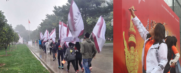 10月21日下午,學(xué)校在東操場舉辦了以“重走長征路,踏上新征程”為主題的紀(jì)念中國工農(nóng)紅軍長征勝利80周年活動。校長鄭文堂,校黨委副書記田紅芳,學(xué)生工作部部長高國偉,研究生工作部部長趙姝明,校團(tuán)委書記何有華,學(xué)生工作部副部長陳衛(wèi)、王靜,各學(xué)院黨委副書記、輔導(dǎo)員以及600多名學(xué)生代表參加了活動。