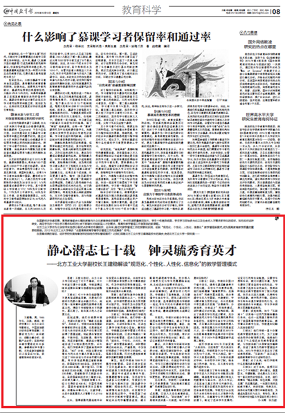 《中國教育報》2016年10月13日第八版以《靜心潛志七十載,鐘靈毓秀育英才》為題,對我校副校長王建穩進行專訪,報道了我校探索構建的“規范化、個性化、人性化、信息化”教學管理新模式。《中國教育報》2016年10月14日第七版以《以“八大工程”為抓手,推進校園文化建設》為題,報道我校推進校園文化建設,發揮文化在學校發展過程中塑造作用的積極做法。《中國青年報》2016年10月15日第四版將以專版的形式,刊發題為《敦品勵學鑄師魂,才德并懋譜華章》的文章,報道我校踐行“匠人精神”的創新發展之路。