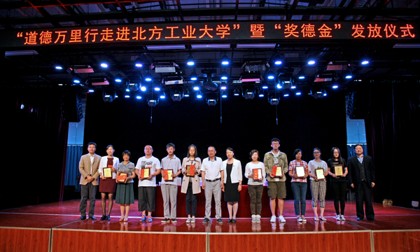 5月16日下午,道德萬里行走進北方工業大學暨“獎德金”發放儀式在學生服務樓多功能活動廳舉行。“獎德金”捐助人林繼排,校黨委副書記田紅芳,校工會常務副主席陳太棟,學生工作部部長李云馳,相關學院黨委副書記、輔導員和10名“獎德金”獲得者以及300余名師生代表參加了發放儀式,儀式由學生工作部部長李云馳主持。